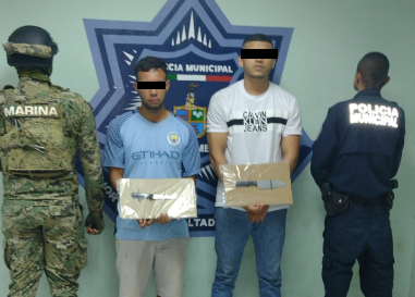 Al momento de su detención, en un operativo encabezado por el comandante del Sector, Roberto Carlos Catarino Hernández Morales, se les aseguraron dos cuchillos que emplearon para amenazar al personal de la tienda.