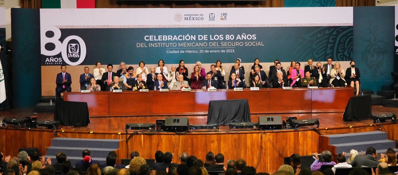 El director general, Zoe Robledo, encabezó la conmemoración de los 80 años del Instituto Mexicano del Seguro Social, en la Unidad de Congresos del Centro Médico Nacional Siglo XXI.