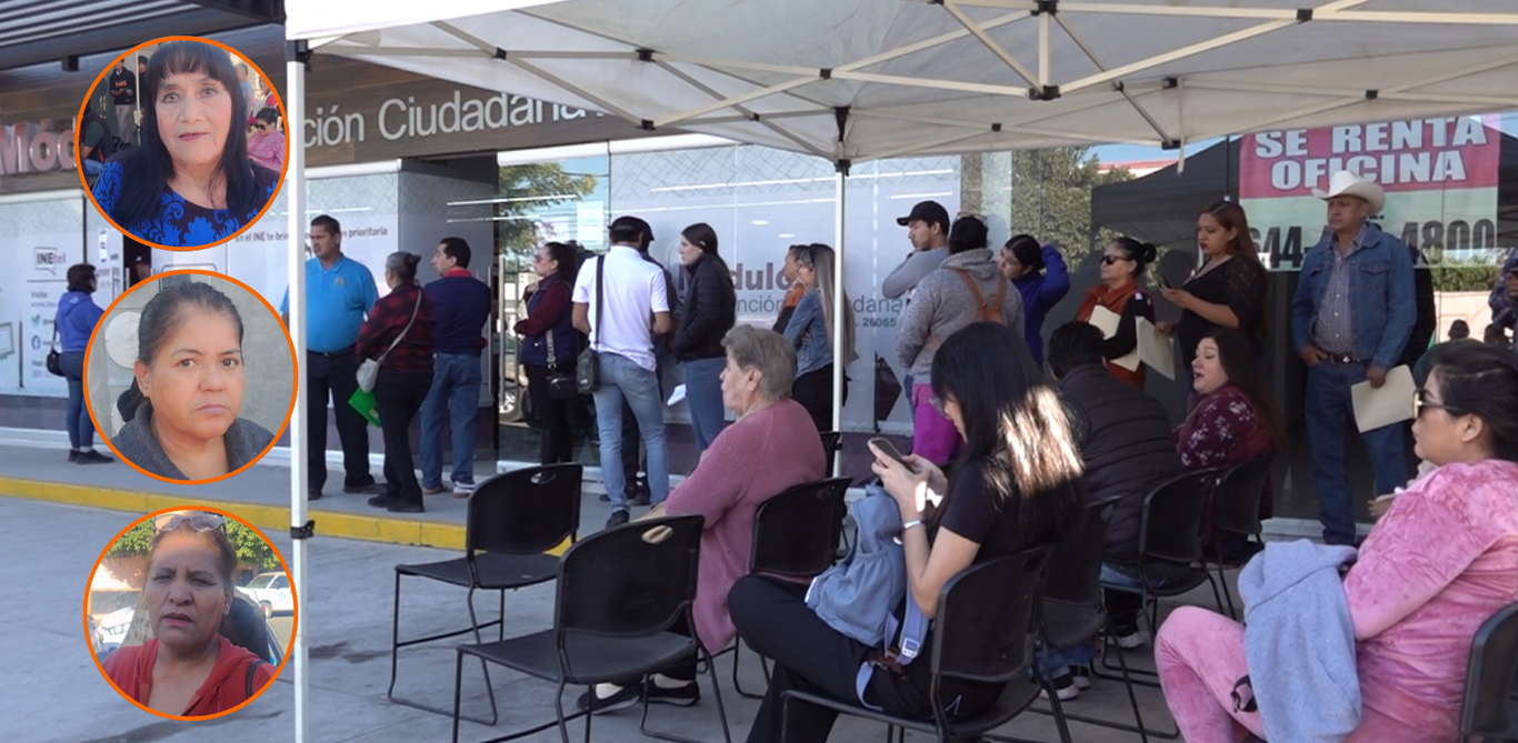 Quienes no solicitan cita con tiempo, para la renovación de su credencial de elector, deben esperar horas y hacer largas filas fuera del Módulo de Atención Ciudadana, sobre la calle Chihuahua 137 sur, en la colonia Centro.