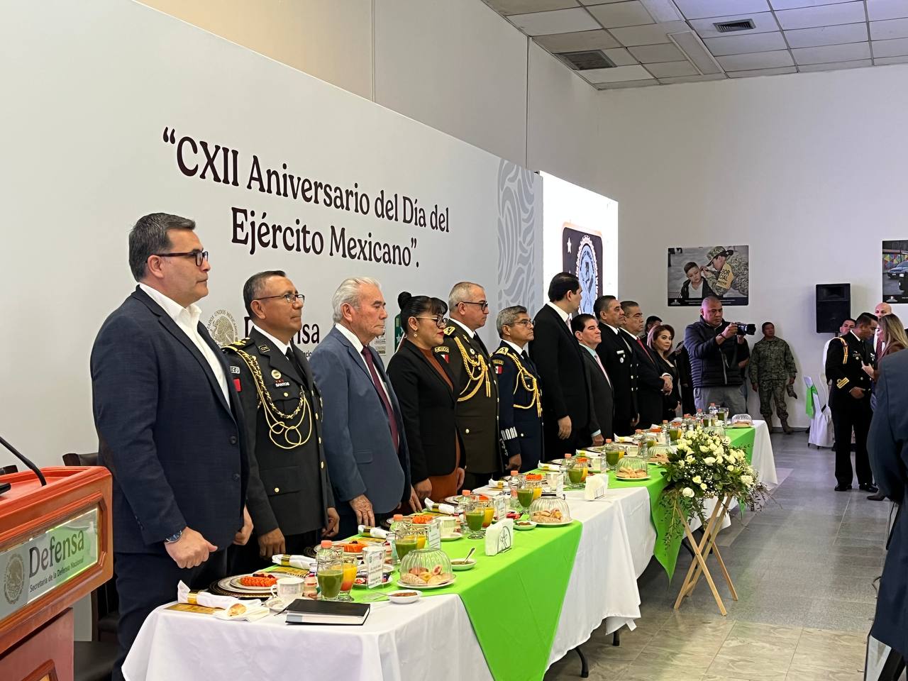 La ceremonia fue presidida por funcionarios de los tres niveles de gobierno, en los que encabezaron Felipe Gonzáles Moreno, comandante de la cuarta zona militar y Adolfo Salazar Razo, Secretario de Gobierno, en representación del Gobernador Alfonso Durazo, quienes entregaron los reconocimientos al personal de la zona.
