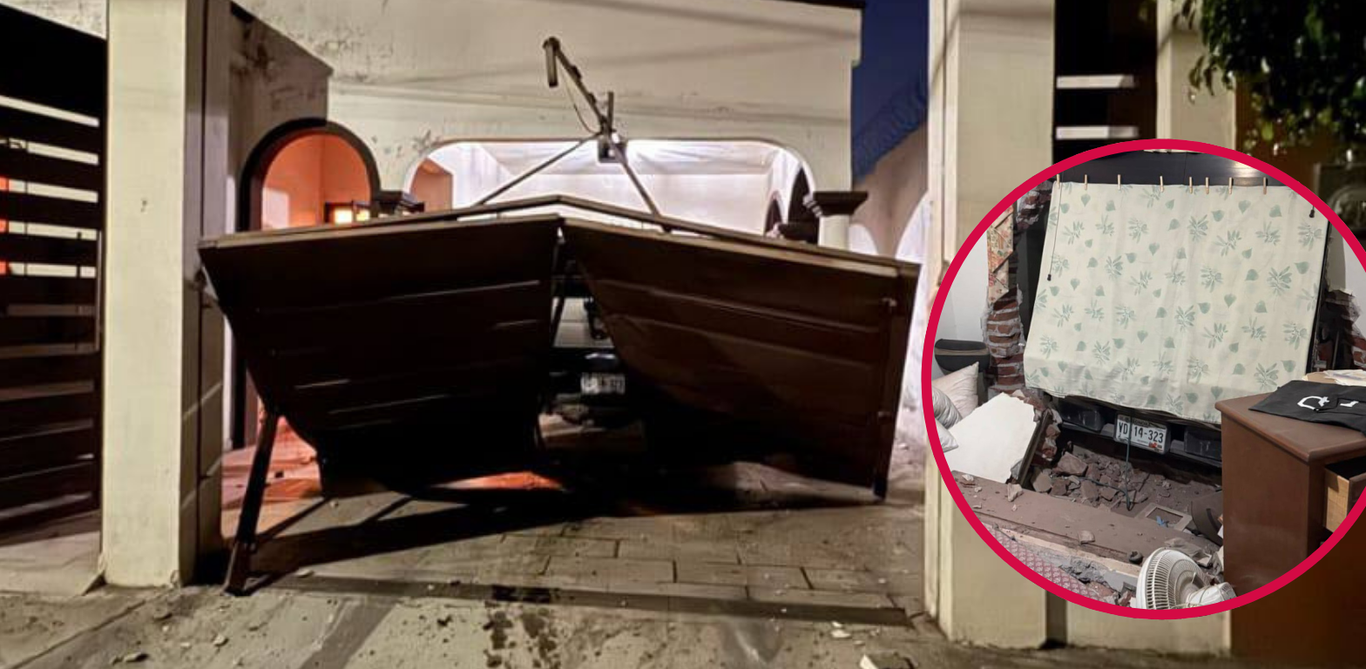 El impacto fue tan fuerte que provocó que una camioneta estacionada dentro de la cochera chocara contra la ventana principal de una recámara.