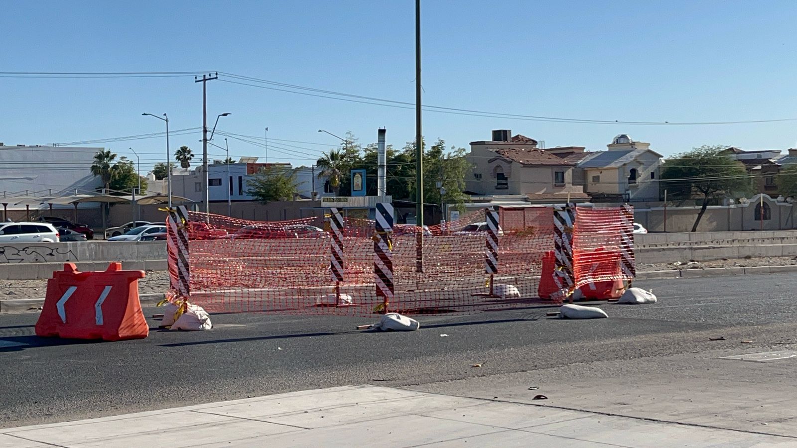 Una fuga subterránea de aguas negras provocó un hundimiento en el carril central del bulevar Vado del Rio en Hermosillo.