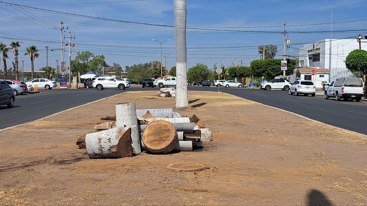 Este jueves comenzaron los trabajos para retirar las palmas secas que se encuentran en la calle Náinari; en una primera etapa se retiraron nueve troncos del camellón que se encuentra entre la Sahuaripa y Tacale, donde posteriormente se realizarán trabajos de reforestación.