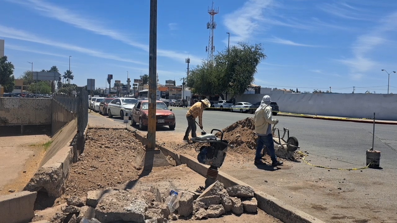 Los trabajos se realizan por parte del Ayuntamiento a través de contratistas, quienes iniciaron el pasado miércoles, e incluso se contempla la reparación de otros tramos frente al IMSS donde la banqueta se ha hundido.