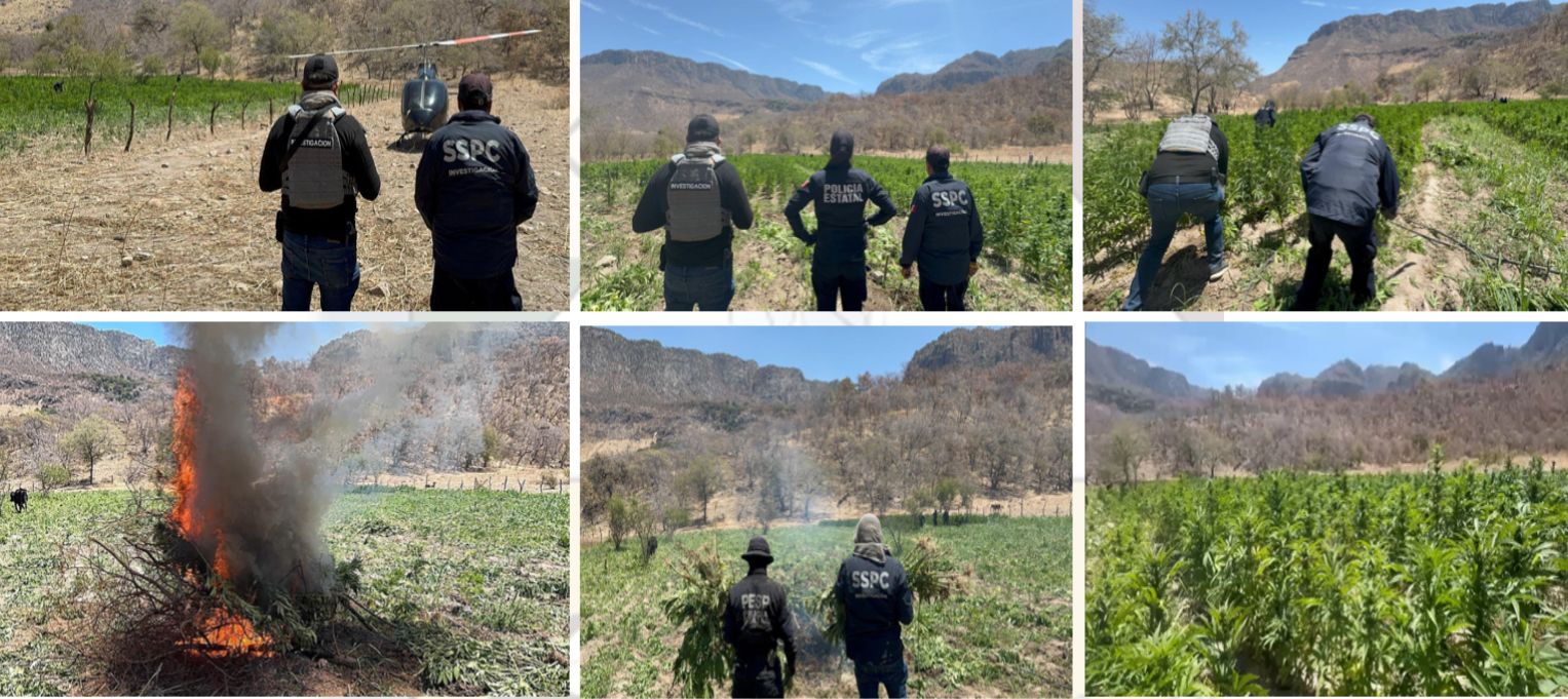 En acciones coordinadas entre instituciones que conforman la Mesa Estatal de Seguridad se efectuó la destrucción de un plantío de marihuana en las inmediaciones del municipio de Álamos, equivalente a un peso de 21 toneladas del mencionado enervante.