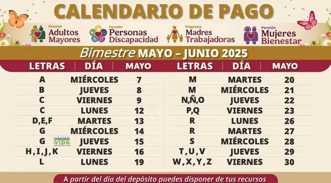 Tras varios días de incertidumbre provocada por la circulación de calendarios falsos, finalmente se dio a conocer la guía de fechas oficial de dispersión para los distintos programas del Bienestar. De acuerdo con esta, los depósitos de los apoyos económicos comenzarán el 7 de mayo.