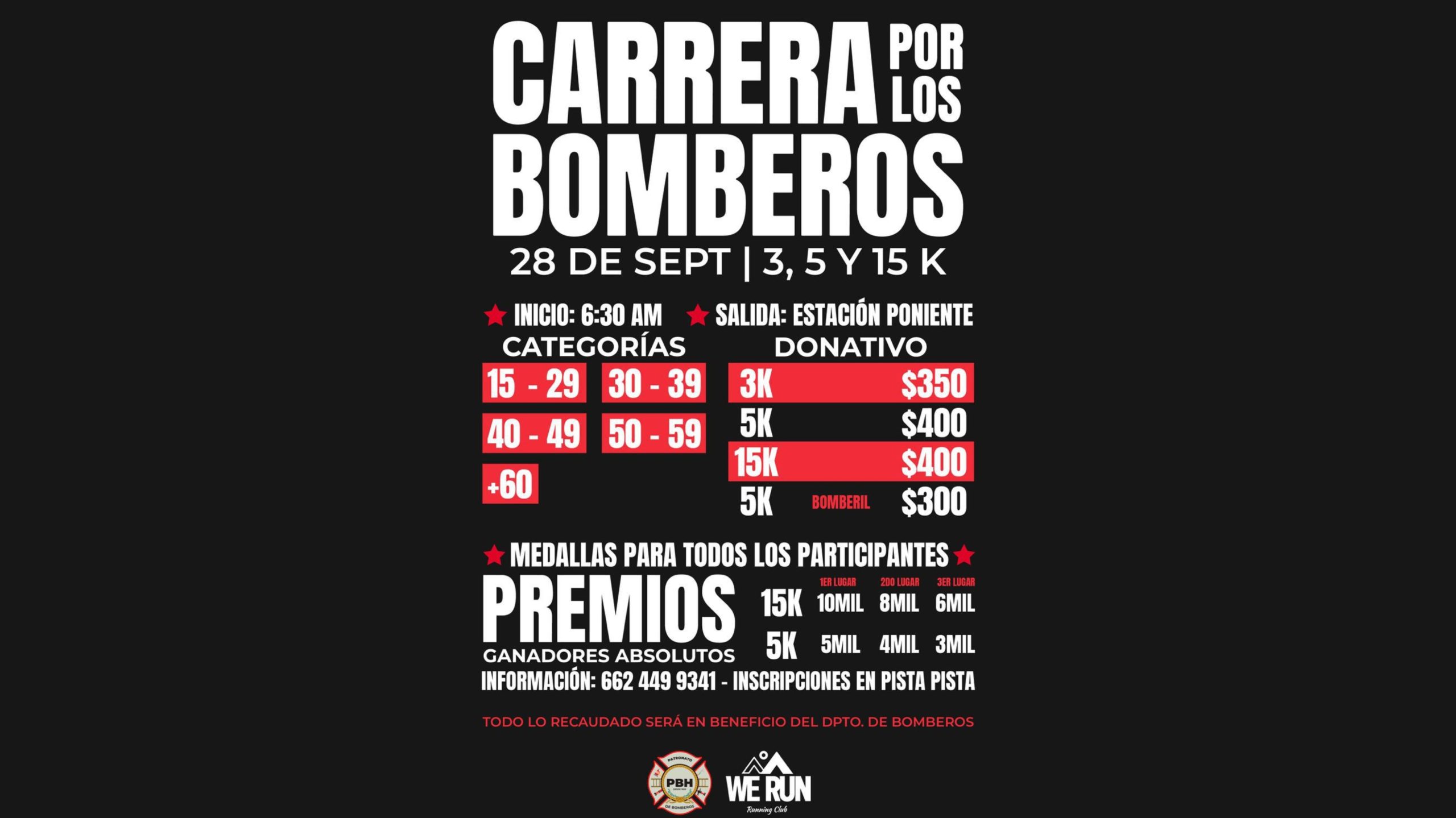 Cabe señalar que, quienes deseen participar se podrán inscribir a través de los enlaces que se publicarán en la página del Patronato de Bomberos de Hermosillo, con costos desde los 300 a 400 pesos.