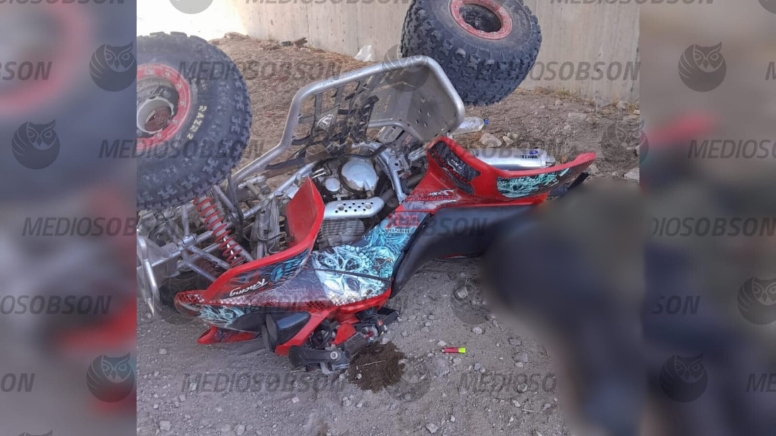 En ese sitio, inicialmente se reportó un accidente de un motociclista, ya que estaba volcada una cuatrimoto de color roja y abajo de la misma el cuerpo sin vida