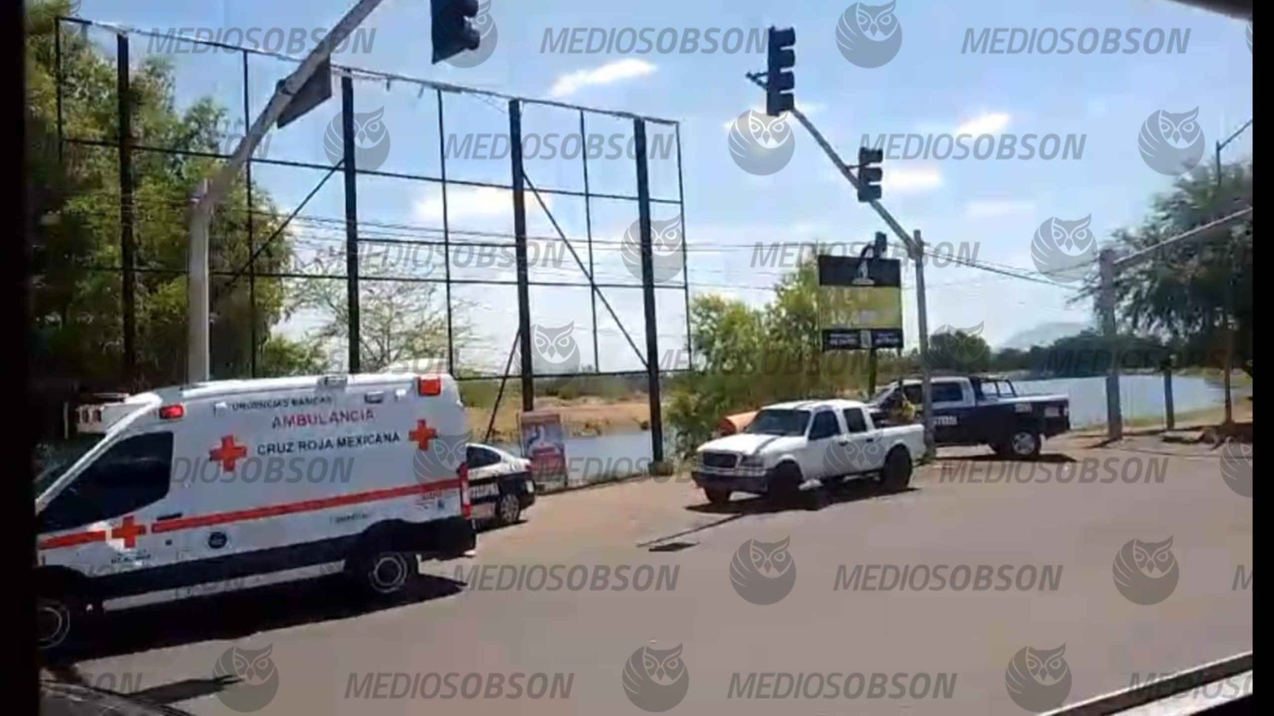 El vehículo se desplazaba por la Kino de sur a norte y al llegar a la Morelos por motivos que se desconocen continuó de frente hasta caer a las aguas del citado afluente.