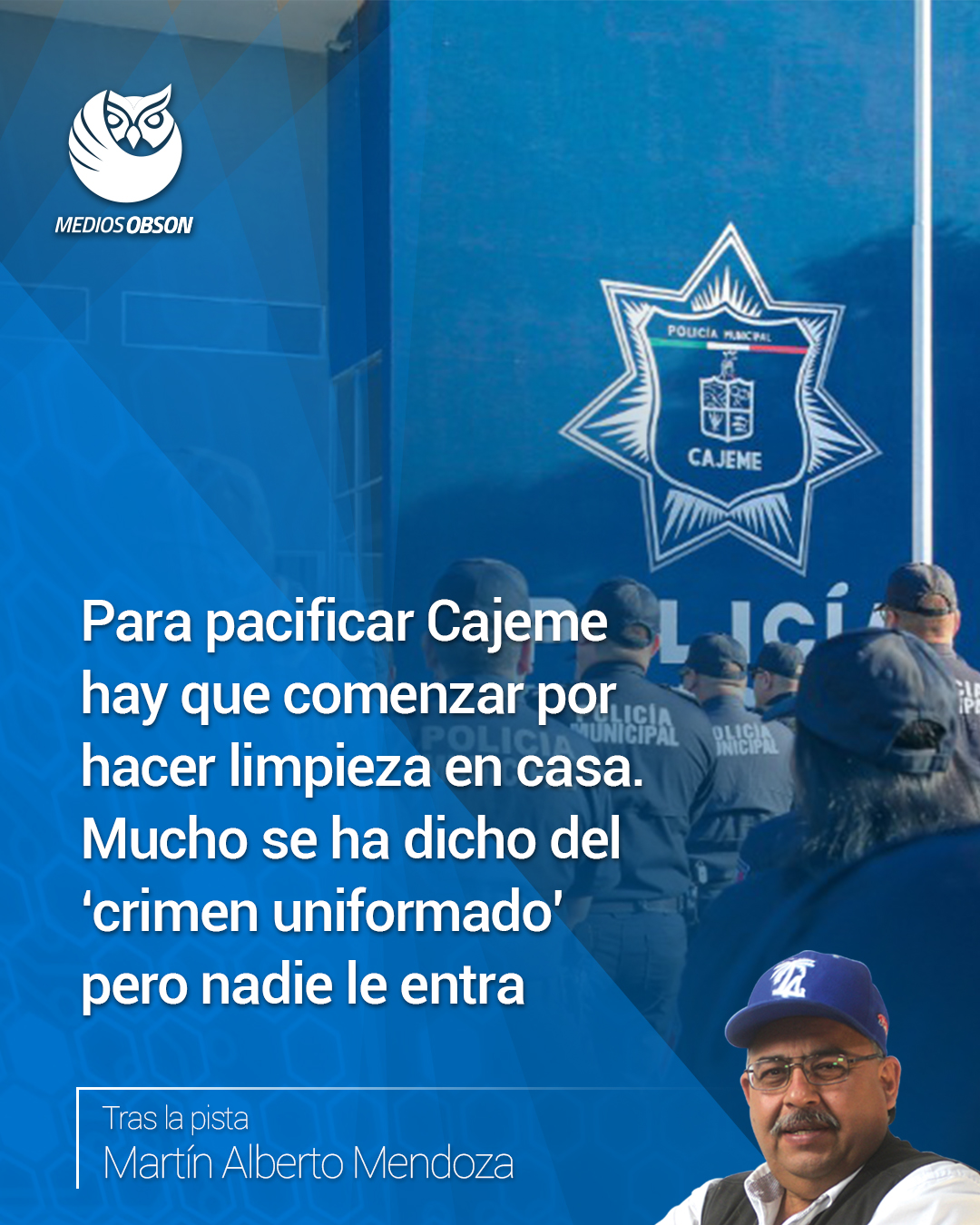 COMO PARTE DE ACCIONES Y PROGRAMAS PARA PACIFICAR CAJEME HAY QUE COMENZAR POR HACER LIMPIEZA EN CASA; SE REQUIERE DE PROFILAXIS POLICIAL DE FRENTE Y SIN MIEDO EN LAS CORPORACIONES E INSTITUCIONES QUE TRABAJAN EN CONSTRUCCIÓN DE LA PAZ; DONDE HAYA QUE IMPLEMENTAR CAMBIOS DESDE MANDOS SUPERIORES HASTA LA TROPA INELUDIBLEMENTE HAY QUE HACERLOS; TAMBIÉN HAY QUE DEJAR ATRÁS FALSAS EXPECTATIVAS PORQUE REALIDAD Y ESTADÍSTICAS REVELAN REAL PANORAMA; TAMPOCO HAY QUE BUSCAR CULPABLES DONDE NO EXISTEN; MUCHO SE HA DICHO DEL ‘CRIMEN UNIFORMADO’ PERO NADIE LE ENTRA PESE A QUE VARIOS GENDARMES ESTÁN PRÓFUGOS DE LA JUSTICIA AL SER DELATADOS DE HABER SOSTENIDO NEXOS CON GRUPOS CRIMINALES; MAYORÍA HUYÓ HACIA ESTADOS UNIDOS DE NORTEAMÉRICA; CUANDO ESTUVO CÁNDIDO TARANGO AL FRENTE DE LA SSPM LOS ESTUVO LLEVANDO A EVALUAR A INSTALACIONES DE 2DA. REGIÓN NAVAL EN GUAYMAS; NO AVANZÓ MUCHO, PERO AL MENOS INTENTÓ ‘LIMPIAR’ TROPA POLICIAL; AHORA BUSCARÁN A TRAVÉS DE PASTORES EVANGÉLICOS RESTITUIR EL TEJIDO SOCIAL; LA IDEA ES RESCATAR A ADOLESCENTES, JÓVENES E INCLUSO A LOS PROPIOS JEFES DE FAMILIAS DE EXECRABLES ACTIVIDADES; AL MENOS DURANTE LUNES Y MARTES NO HUBO EJECUCIONES; SALVO UN JOVEN PRIVADO DE LA LIBERTAD EN LA MISIÓN SAN RAFAEL; DESCONOCIDOS SE LO LLEVARON A LA FUERZA EN UN SEDÁN A PLENA LUZ DEL DÍA; ESTO LUEGO DE LOS TRES ASESINATOS DEL DOMINGO; SÓLO TRES OSAMENTAS SE LOCALIZARON EN CASA DE LA RINCÓN DEL VALLE; ERAN RESTOS ÓSEOS DE 2 HOMBRES Y UNA MUJER; SON ANALIZADOS