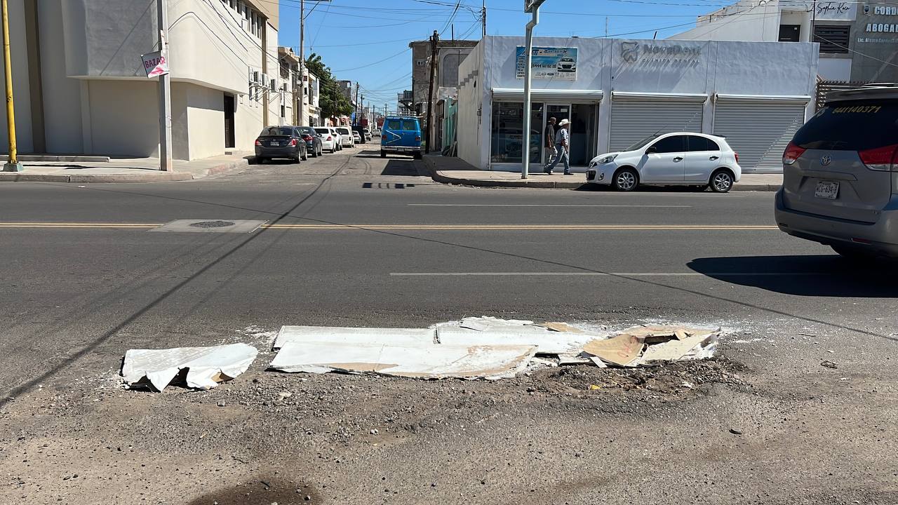 Con tablaroca vecinos del crucero de las calles Zaragoza y callejón República de Chile taparon un hundimiento que se formó en el pavimento, esto para evitar que los automovilistas caigan en él.