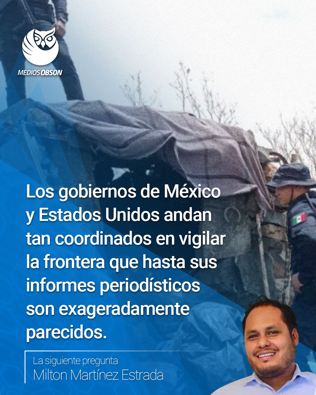 Los gobiernos de México y Estados Unidos andan tan coordinados en vigilar la frontera que hasta sus informes periodísticos son exageradamente parecidos. Técnicamente esto no tiene nada de malo, pero como que algo no cuadra.