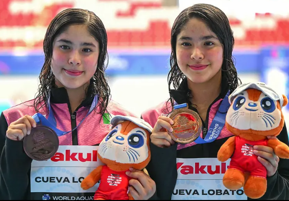 Las gemelas Lia y Mia Cueva le brindaron a México la medalla de bronce en los clavados de trampolín 3 metros sincronizados femenil, en el Campeonato Mundial de Deportes Acuáticos Singapur 2025.