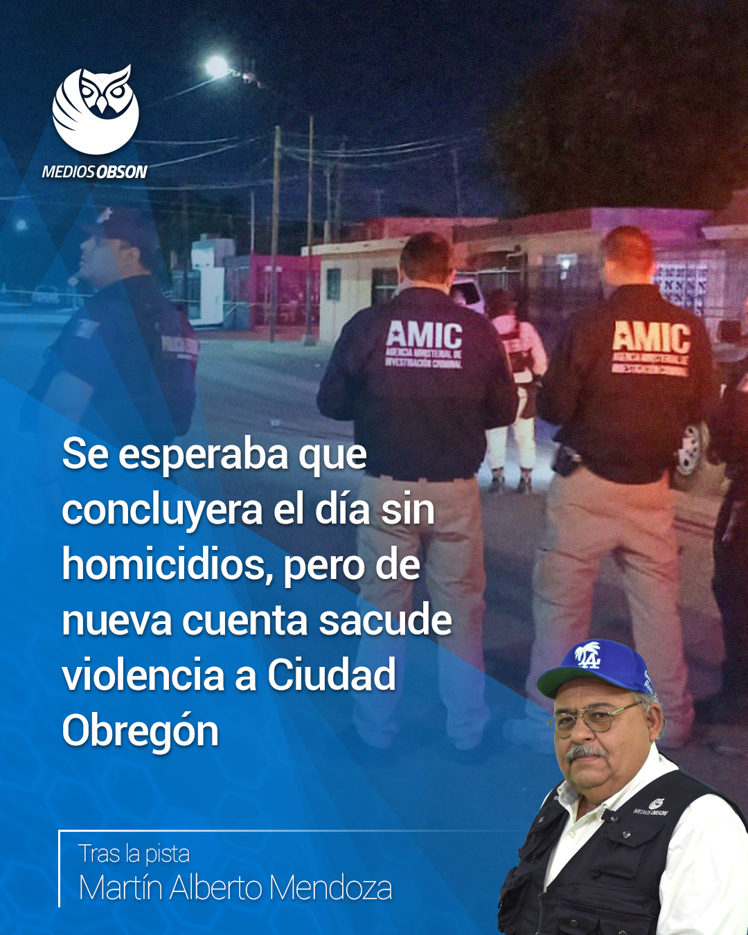 DE NUEVA CUENTA SACUDE VIOLENCIA A CIUDAD OBREGÓN, EN TRES AGRESIONES ARMADAS DEJAN DOS PERSONAS SIN VIDA; HOSTILES EVENTOS SUCEDIERON DURANTE LA MADRUGADA Y ANOCHECER DE ESTE MARTES; EN CALLES DE LA FAUSTINO DEJARON POR MUERTO A MASCULINO BALEADO; SIN EMBARGO, SOBREVIVIÓ DE MOMENTO AL RECIBIR TRES BALAZOS; UNO DE ÉSTOS EN EL ROSTRO Y DOS EN ABDOMEN; DESPUÉS DE QUE SE ABATIÓ INTENSA LLUVIA SE ESPERABA QUE CONCLUYERA EL DÍA SIN HOMICIDIOS; PERO AL ANOCHECER APARECIÓ SICARIO COMO UN FANTASMA DE LA OSCURIDAD Y ABRIÓ FUEGO CONTRA OCUPANTES DE VIVIENDA EN LA MISIÓN DEL REAL; UNO MURIÓ Y EL OTRO QUEDÓ LESIONADO ANTE EL TEMOR Y ZOZOBRA DE VECINOS DE ESE SECTOR; AL MISMO TIEMPO POR LA RODODENDRO EN LA BELTRONES DESCONOCIDOS SE LLEVARON A LA FUERZA A UN JOVEN; AL QUEDAR VARADO EL CARRO EN EL QUE HUÍAN SOBRE EL BULEVAR LAS TORRES, AL SUR DE LA BIMBO LO ABANDONARON EN UNA LAGUNA; DENTRO SE HALLÓ A SU VÍCTIMA SIN VIDA; ESTABA MANIATADO Y TIROTEADO; SE DEDUCE QUE ASESINOS HUYERON EN OTRO CARRO; LA NOCHE DEL LUNES EN POCO MÁS DE DOS HORAS IGUALMENTE EJECUTARON A 2 MASCULINOS; MORTALES SUCESOS ACONTECIERON EN LA KINO Y EL RODEO; DE TAL FORMA QUE EN LAS ÚLTIMAS HORAS SE HAN CONSUMADO CUATRO ASESINATOS MÁS; CAYÓ PRESUNTO CRIMINAL DE LAS VÍCTIMAS DEL CARRIL SAN ISIDRO; FUE CAPTURADO EN FRACCIONAMIENTO LOS HÉROES EN UN CATEO DE AMICS, INFANTES DE LA SECRETARÍA DE MARINA Y AGENTES DE LA SSP