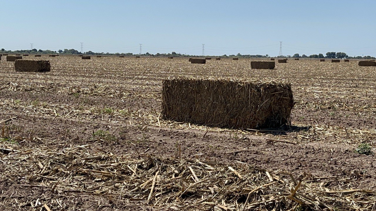 Las trillas de maíz terminaron hace poco más de un mes, dejando los restos de la planta en los terrenos del Valle del Yaqui, lo que es aprovechado para la creación de pacas que servirán como alimento para el ganado de la región.
