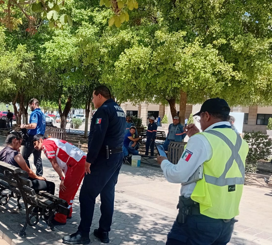 El hecho ocurrió alrededor de las 13:00 horas, cuando los oficiales Gameros Molina y Avilés Lerma, abordantes de la patrulla E-157 de la Policía Municipal, atendieron el reporte de una persona inconsciente en las calles Hidalgo y Comonfort. Tras brindarle agua y suero para estabilizarla, la trasladaron en una ambulancia al Hospital General para recibir atención médica.
