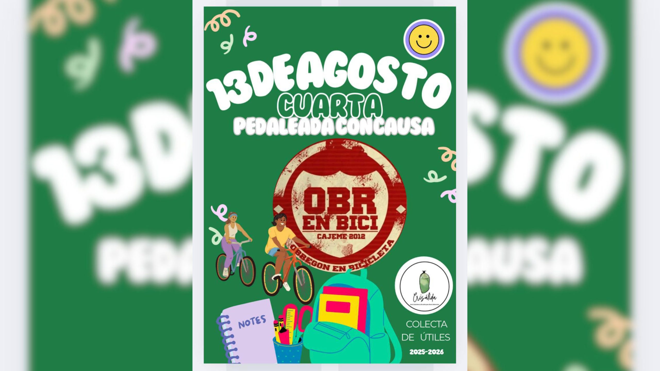 Jesús Adolfo Aguilar, coordinador general de OBR en Bici, mencionó que en esta ocasión se trabaja de la mano con el centro comunitario Crisálida, cuya coordinadora es Judith Cázares, donde se ha iniciado una campaña para recolectar mochilas y útiles escolares.
