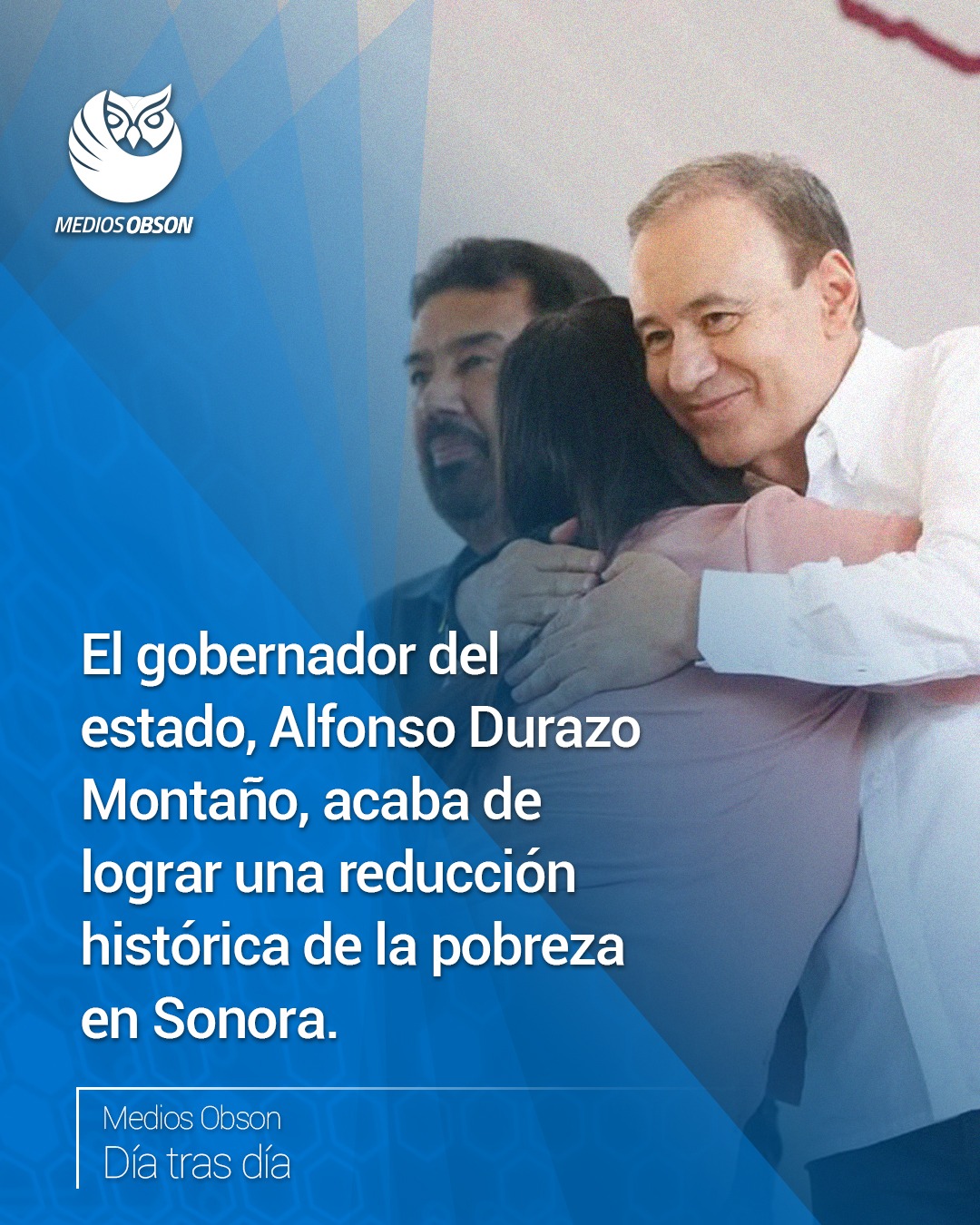 El gobernador del estado, Alfonso Durazo Montaño, acaba de lograr una reducción histórica de la pobreza en Sonora, gracias a tres ejes fundamentales que tienen que ver los programas sociales, como el programa de Becas del Sonora de Oportunidades, así como con el pago de salarios dignos por parte de las empresas y la estabilidad económica impulsada por el Plan Sonora de Energías Sostenibles. En cifras dijo el mandatario que alrededor de 450 mil personas salieron de la pobreza en la entidad, así mismo durante su gestión Sonora alcanzó en 2024 el nivel mas bajo de pobreza en la historia, con una reducción del 15.79 puntos porcentuales al pasar de 29.9 por ciento en 2020 a 14.11 el año pasado. Esto significa dijo que mas de 450 mil sonorenses salieron de la pobreza, y además 59 mil personas salieron de la pobreza extrema. El mandatario destacó que estos resultados, con los que Sonora logró alcanzar el mínimo histórico de pobreza desde que tienen registro, de acuerdo con cifras del 2024, según el Instituto Nacional de Estadística, Geografía e Informática (INEGI). En Sonora en el 2020 el 29.9 por ciento de la población es decir 885 mil personas vivían en pobreza. En 2022 con un 21.7 por ciento, eran 650 mil y para 2024 el 14.11 por ciento de la población, es decir, 431 mil era los que estaban en la pobreza.