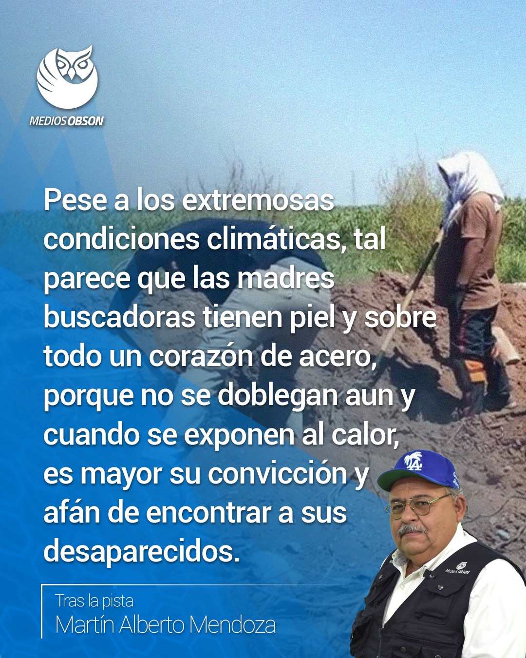 PESE A las extremosas condiciones climáticas, tal parece que las madres buscadoras tienen piel y sobre todo un corazón de acero, porque no se doblegan aun y cuando se exponen al calor, de hasta cerca de los 45 grados centígrados. Es mayor su convicción y afán de encontrar a sus desaparecidos. Nada parece detenerlas con todo y que no reciben un solo peso por su humanitaria y solidaria tarea. Se empeñan en sus objetivos de tal forma que, en ocasiones termina la luz del día y siguen trabajando de noche. Las principales bujías son Silvia Velázquez Rodelo y Ana Isabel Castro Cota, quienes ya llevan más de seis años y medio, al frente del colectivo Guerreras Buscadoras de Cajeme, luchando contra la adversidad de localizar y regresar a sus hogares, al mayor número posible de jóvenes y adultos de ambos sexos que, por diferentes motivos fueron víctimas de una desaparición forzosa, y sus familias ya no volvieron a saber de ellos. Y, aunque usted no lo crea, pero existe un buen número de personas que de plano se resignaron a no saber de ellos, debido a que criminales, no conforme con llevárselos y desaparecerlos todavía hacen gala de impunidad amenazando a padres o esposas de sus víctimas y, por esto se ven obligados a callar. Por eso, Velázquez Rodelo, cuando hace un llamado a la población, para que les alleguen datos o información donde puedan existir fosas clandestinas, expone claramente, que ellas no andan en busca de culpables, sino de esos seres que dejaron de forma clandestina en las entrañas de la madre tierra. Justamente, ayer, la dirigente de las madres buscadoras, hizo una transmisión en vivo a través de la página del colectivo, para informar que este miércoles y jueves regresaron de nuevo al predio “La Antena” ubicado en calle 400 entre Kino y 2, Valle del Yaqui, para aferrarse a la búsqueda del hermano de una de sus integrantes. Incluso, este mismo motivo la llevó ahí el sábado 21 de junio a revisar el lugar, pero iniciaron las búsquedas el lunes 23 con el primer hallazgo. Al día siguiente encontraron otra osamenta. El miércoles 25 descansaron, pero el jueves 26 hallaron los restos de once personas. En total se localizaron 26 y de esta cifra ya 21 regresaron a sus hogares, no como sus familiares hubieran deseado. Todavía faltan por entregarse tres hombres y dos mujeres, porque no se han identificado. Quizás porque sus seres queridos fueron intimidados por delincuentes, y por ese motivo no acudieron a asentar su denuncia, por lo que Velázquez continúa insistiendo en que acudan para que esos “tesoros”, como les llama, tengan una sepultura digna y no terminen en la fosa común…SIN DUDA que el tema de los desaparecidos es de enorme impacto y gran connotación social, no sólo en Cajeme y Sonora, sino en todo el territorio mexicano, donde el fenómeno es mayúsculo. Por ello, la Presidenta de la República, Claudia Sheinbaum Pardo, debe entrarle de frente y designar a la persona idónea para la Comisión Nacional de Búsqueda que el último día de agosto dejará vacante, su actual titular, Teresa Guadalupe Reyes Sahagún, quien inexplicablemente llegó a ese cargo sin contar con los conocimientos necesarios y menos sin tener un perfil profesional, lo que hizo que terminará por dimitir, así que, a partir del uno de septiembre se tendrá un nuevo comisionado, una vez que acrediten los requisitos solicitados en la convocatoria. En la entidad, Dante Noel Talavera Nieblas, despacha como nuevo titular de la Comisión de Búsqueda de Personas, y hasta donde se sabe sostiene muy relación con los colectivos. Esto, es elemental para que las madres buscadoras puedan hacer su penosa e incansable labor, al solventar el costo del alquiler de la máquina retroexcavadora que requieren. También les proporciona vehículos con gasolina para movilizarse, además de dotarlas del resguardo de elementos de la Policía Estatal de Seguridad Pública (PESP) y oficiales de la Agencia Ministerial de Investigación Criminal (AMIC), Ejército y Guardia Nacional…RESULTA importante decir, que desde 2009 existe en el Gobierno del Estado un programa de asistencia social, para las víctimas de la violencia y, en ese plano se incluye a familias de desaparecidos. Se trata de la Comisión Ejecutiva Estatal de Atención a Víctimas (CEEAV). Las asistencias consisten en una tarjeta de vales, con una periodicidad mensual, para compra de alimentos, además apoyo inmediato. Igualmente, para gastos funerarios. Es decir, si los seres queridos de aquellas personas que son encontradas en fosas clandestinas no tienen capacidad económica para pagar el sepelio el CEEAV se encarga de solventar ese tema. También les prestan ayuda psicológica. Otorgan becas para los niños y brindan asesorías jurídicas con el asesoramiento de profesionistas en la materia. Incluso, para su registro los que requieren de ese tipo de contribuciones, pueden solicitar a las encargadas de los colectivos de búsqueda, para que las inscriban, más cuando se requiere de cubrir gastos funerarios. Ahí es cuando se genera la ayuda inmediata. Pese a la importancia, pero sobre todo a relevancia de este programa, principalmente, para gentes de escasos recursos que resultan afectados por la violencia, hace apenas hace tres años que comenzaron a llegar esos beneficios…EN OTROS temas, pues resulta que la noche del miércoles se confirmó que el cadáver hallado a temprana hora al lado norte del local de eventos sociales “La Cantera” resultó ser el velador que tenía varios días desaparecidos. Fue identificado como Oscar Fabián, de 53 años. Tenía su domicilio en la colonia Cortinas. De acuerdo a la necropsia de ley, el hombre fue ahorcado por sus victimarios. Hay que recordar que de manera oportuna se informó que ya acusaba estado de descomposición, lo que indica que ya llevaba días sin vida. Ahora falta que elementos de la Agencia Ministerial de Investigación Criminal (AMIC) esclarezcan este artero cri