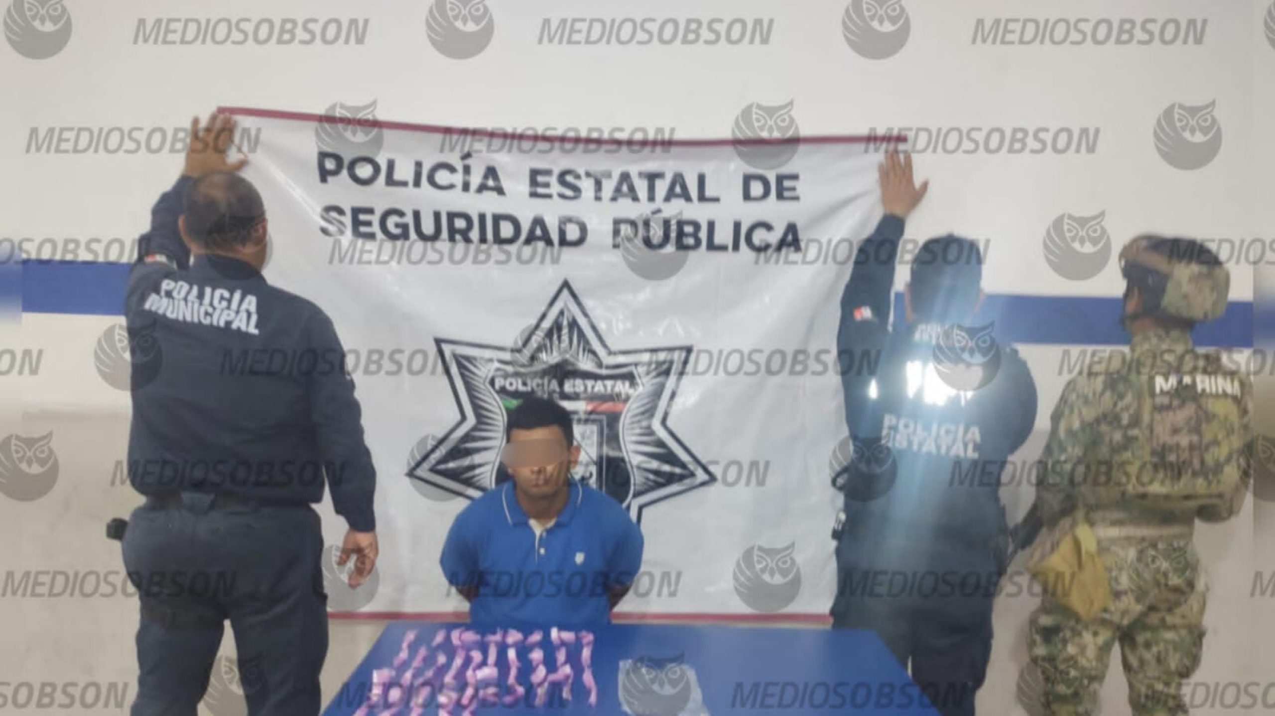 “En poder de casi cincuenta dosis de “crystal” fue capturado un individuo que dijo trabajar como velador, en colonia El Campanario. La detención del presunto envenenador público se efectuó alrededor de las 19:20 horas del jueves, en Santa Araceli entre Santa Anita y Santa Carolina.El ahora imputado es José Ángel N. C., de 18 años y domiciliado en ese mismo sector del oriente de la localidad. Fue detectado por elementos de las Policías Municipal, Estatal de Seguridad Pública e infantes de Marina, en bulevar Las Torres y Santa Araceli. Al verse copado por los uniformados, el tipo intentó huir a toda carrera rumbo hacia la Santa Anita y al llegar de nuevo a la Santa Araceli fue detenido por marinos y policías estatales. Al practicarsele una inspección corporal fajada en el lado derecho del pantalón traía una bolsa de plástico transparente.En su interior se localizaron cuarenta y siete envoltorios confeccionados en plástico de color rosa.Al revisar su contenido quedó al descubierto una sustancia con las características del “crystal” y se procedió a su arresto.Por último fue remitido a las autoridades de la fiscalía estatal mediante un Informe Policíal Homologado.Contenido para mayores de 18; se recomienda discreción.