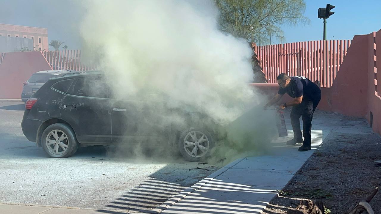 El incidente ocurrió alrededor de las 8:30 horas, cuando una camioneta Nissan, Rogue, color negro, con placas de Sonora, comenzó a incendiarse mientras estaba estacionada en el inmueble ubicado en la calle Cultura y Agustín de Vildosola.