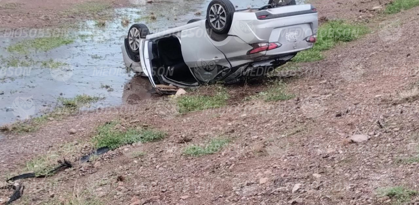 La tarde de este martes, alrededor de las 17:30 horas, un fuerte accidente se registró en el kilómetro 205 de la carretera Hermosillo–Guaymas, luego de que las intensas lluvias provocaran que un vehículo perdiera el control, saliera del camino, chocara y posteriormente volcara.