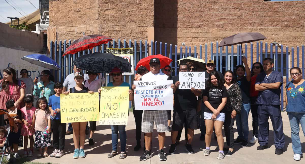El grupo de vecinos inconformes son residentes de las colonias Tulipanes, Soleil, Paseo San Ángel, Cezanne, San Rafael, San Gabriel, entre otras, quienes indican que la instalación del centro podría poner en riesgo la seguridad de sus familias.