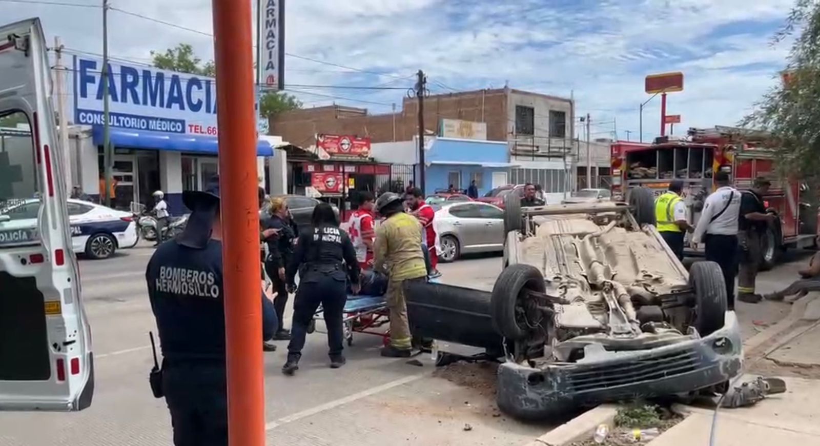Dos personas lesionadas y cuantiosos daños materiales fueron el saldo que dejó la volcadura de un automóvil, en el sector norponiente de la ciudad de Hermosillo, durante la mañana de este viernes.