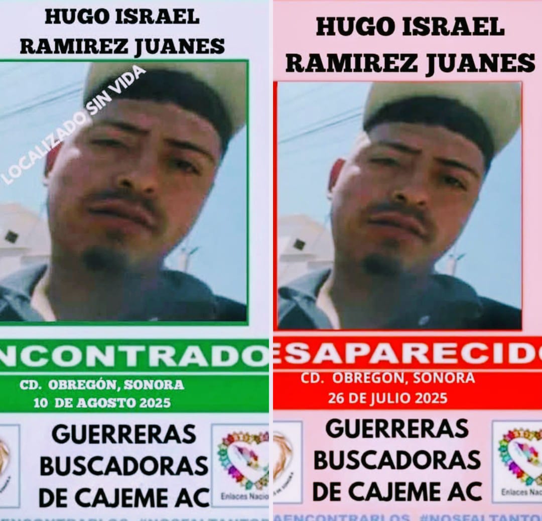 Pese a que el hallazgo ocurrió el pasado domingo 10 de agosto y luego entregado a sus familiares, no se informó al colectivo Guerreras Buscadoras de Cajeme
