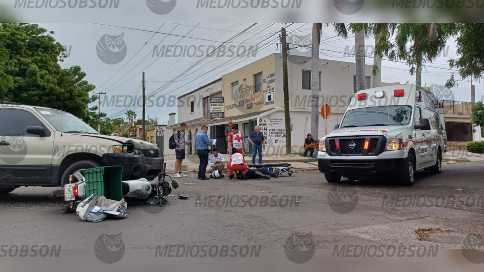 Lesiones en diferentes partes del cuerpo sufrió una joven, cuando la motocicleta que conducía fue chocada por una vagoneta que le cortó circulación.