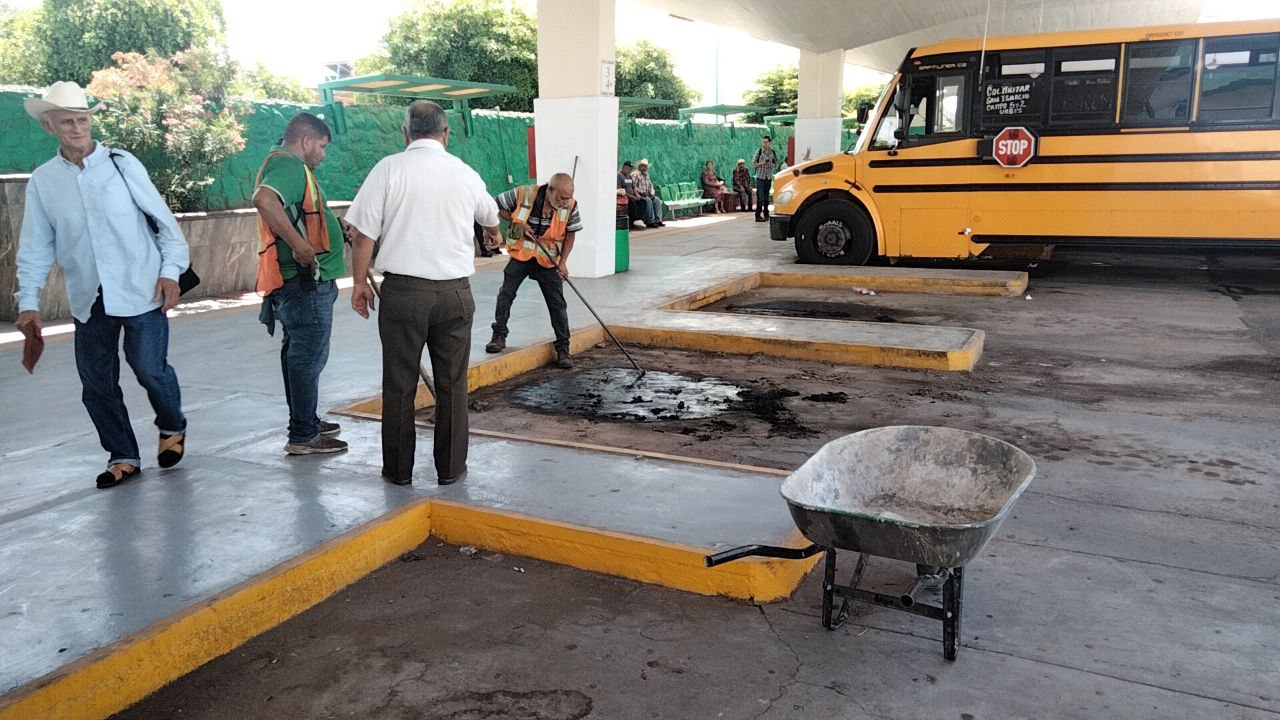 Una limpieza general se llevó a cabo en la Central de Autobuses de Ciudad Obregón, enfocándose en los 21 andenes, los carriles de estacionamiento y los autobuses de pasajeros de la sala 2, donde se ubica el transporte sub urbano, dijo Ramón Lorenzo Tapia Castillo.