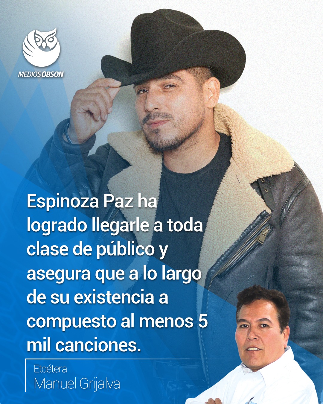 Aprovecha cada día como si no quedase mañana… Aunque en sus inicios nadie creyó en él e incluso, hasta se burlaban de sus sueños y aspiraciones, Espinoza Paz nunca dejó que las bromas que de él se hacían lo desanimarán de triunfar a lo grande y ser reconocido como un excelente compositor y buen cantante… es porque siempre creyó en él, que hoy en día es reconocido como un gran compositor e intérprete, hasta podría decir que tras la partida de Joan Sebastián y Juan Gabriel, es Espinoza Paz quien más se les parece y es que además de ser muy talentoso es también sencillo, humilde y muy carismático, cualidades que no todos poseen, es por eso que es reconocido como el ‘cantautor del pueblo’… con sus canciones Espinoza Paz ha logrado llegarle a toda clase de público, asegura el cantante que a lo largo de su existencia a compuesto al menos 5 mil canciones, de entre las que más recuerdo se encuentran ‘Inolvidable’ y ‘No llega el olvido’ de Jenni Rivera, ‘Después de ti ¿quién?’, canción que grabó y convirtió en gran éxito ‘La Adictiva’, mientras que con ‘El ruido de tus zapatos’ triunfó a lo grande ‘La Arrolladora Banda El Limón’, con ‘Te estoy engañando con otra’ se escuchó mucho ‘Calibre 50’, banda ‘MS’ le grabó ‘Mi olvido’ y ‘A lo mejor’, mientras que ‘El Bebeto’ le dio vida a ‘Seremos’ y ‘Viajes para marte’… Todo experto fue alguna vez un principiante… ‘Los Tigres del Norte’ han presentado en todas sus plataformas digitales su nuevo video clip oficial de nombre ‘Cosas del destino’ (‘El divorcio’), canción que forma parte del álbum llamado ‘La lotería’, letra que nació del puño y letra de Pablo Preciado Rojas, historia con la que esperan seguir en la preferencia de sus millones de seguidores… Si quieres algo que nunca tuviste, debes hacer algo que nunca hiciste… Ayer les dije que 4 mil personas habían firmado ya para que Pepe, Ángela y Leonardo Aguilar fueran des invitados a presentarse en la ceremonia del grito de independencia en Jalisco, ahora son ya 63,427 las personas que han firmado para que el gobernador de aquella entidad les diga que NO a los Aguilar, cosa que no creo que haga, pues ‘poderoso caballero es don dinero’… La sonrisa cuesta menos que la electricidad y da más luz… ‘El esquimal’ se titula la nueva canción de banda ‘Triguera’, sencillo promocional que está ya al alcance de sus seguidores en todas sus plataformas digitales y que también pueden solicitar a la estación de radio de su preferencia… seguramente que ‘El esquimal’ será una de las canciones más bailadas en las posadas que se acercan a pasos acelerados, también en los convivios y juntadas… Hoy es el primer día del resto de tu vida… Muy sabias las palabras de Alexander García, – mejor conocido como ‘El Fantasma’, – quién en reciente entrevista reconoció que ‘un corrido es un corrido y una canción es una canción’, ¿así o más claro?… El mayor riesgo es no correr ningún riesgo… Quien no pudo negar que será él uno de los cantantes que estarán presentándose en la inauguración de la Copa del Mundo de la FIFA 2026 es Xavi, el cantante de corridos tumbados es uno de los que se harán presentes en el evento que habrá de llevarse a cabo en el Estadio Azteca, – edificio que en ese entonces llevará el nombre de ‘Estadio Banorte’, – eso en junio del 2026… Cuando te permites lo que te mereces, atraes lo que necesitas… Etcétera…