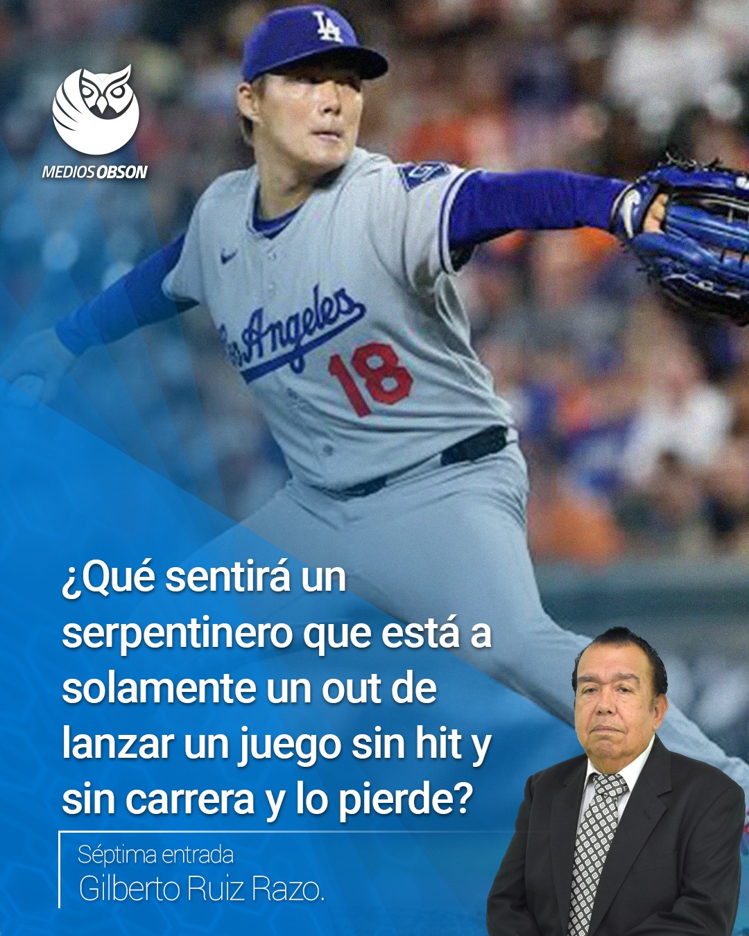 TRAGEDIA.- ¿Qué sentirá un serpentinero que está a solamente un out de lanzar un juego sin hit y sin carrera y lo pierde?. Fue, en verdad, una tragedia para el derecho japonés Yoshinobu Yamamoto cuando el bateador de Orioles, que caían 0-3 ante Dodgers, Jackson Holliday, puso a viajar el picheo 112 del serpentinero oriental, que lo tenía en 2 bolas y 1 strike, para empezar lo que vendría después, cuando no solo perdió la joya de pitcheo, sino el juego mismo.