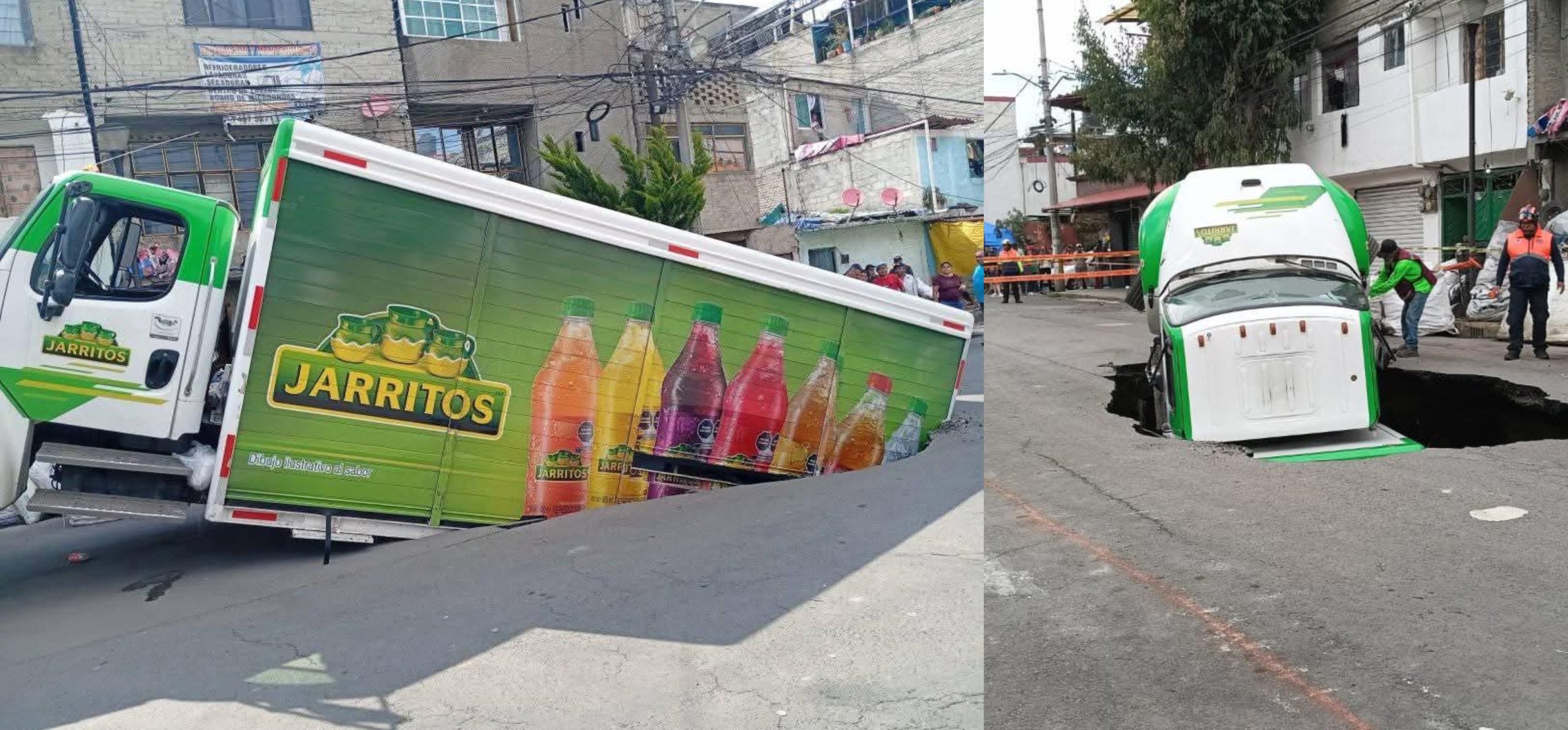 El área permanece acordonada mientras se llevan a cabo maniobras para remover el camión y revisar posibles afectaciones subterráneas que pudieran provocar más hundimientos.