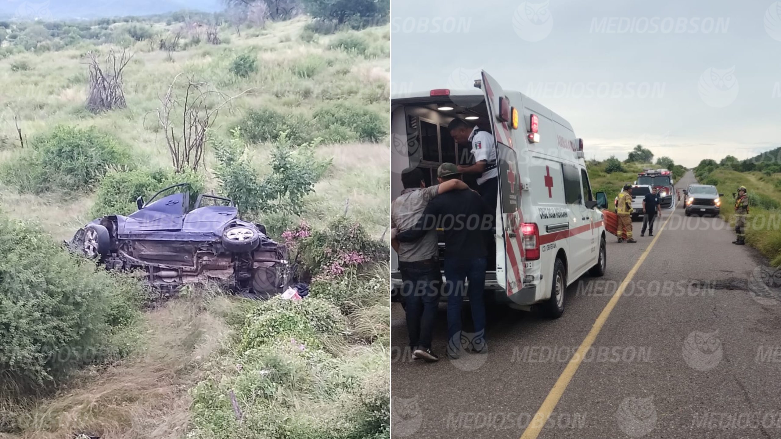 Se informó que el automóvil se desplazaba de Hornos a Tesopaco y debido al exceso de velocidad al tomar una curva se salio del camino a la izquierda del conductor.