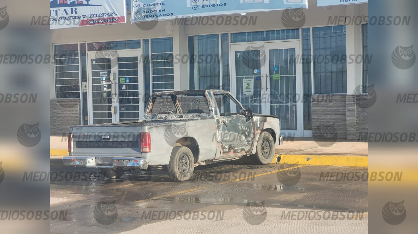 La unidad automotriz incendiada es un pick up, marca Chevrolet, línea S-10, modelo 1994 y de color gris.