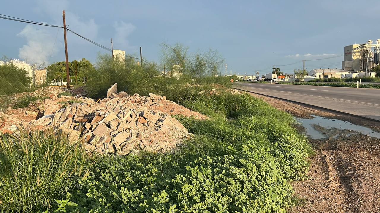 Así lucen los costados de la Carretera México 15, en la entrada sur de Ciudad Obregón: basura y, principalmente, escombros son lo primero que se ve al llegar al municipio.