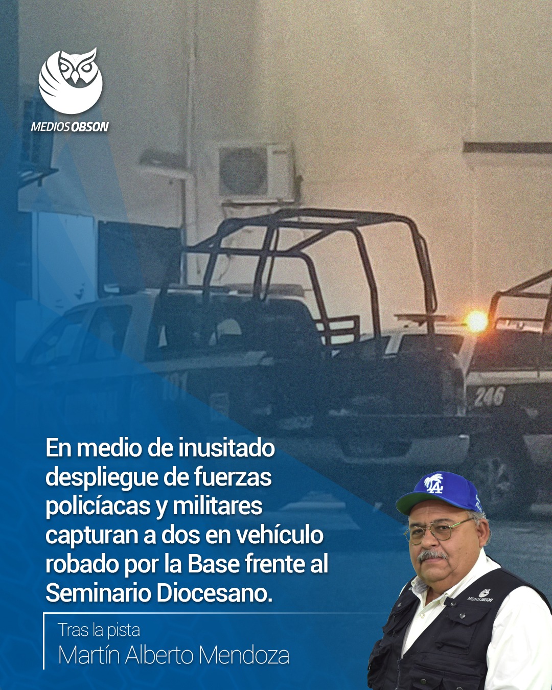 EN MEDIO DE INUSITADO DESPLIEGUE DE FUERZAS POLICÍACAS Y MILITARES CAPTURAN A DOS EN VEHÍCULO ROBADO POR LA BASE FRENTE AL SEMINARIO DIOCESANO; POR MOMENTOS VECINOS TEMIERON QUE SE TRATARA DE ALGO MÁS GRAVE; AUTO FUE DETECTADO POR ARCO CARRETERO EN LAS PROXIMIDADES DE LA ‘T’ DE BÁCUM; SON ACCIONES QUE DEBEN IMPLEMENTARSE BAJO EXTREMAS MEDIDAS DE SEGURIDAD; ELLO DEBIDO A QUE DESCONOCEN SI OCUPANTES PODRIAN TRAER ARMAS DE FUEGO; PARTICIPARON CASI VEINTE POLICÍAS Y MARINOS; PREVENTIVOS DE LA COMISARÍA DE PROVIDENCIA SE ENCARGARON DEL ARRESTO; AYER MISMO MINISTERIO PÚBLICO VINCULÓ A PROCESO A LOS DETENIDOS; FRENTE A MISIÓN DEL REAL POLICÍAS DE LA DELEGACIÓN SURESTE UBICARON Y ATRAPARON A SUJETO ARMADO; TRAÍA CUCHILLO FAJADO Y COINCIDE CON TIPO QUE ACABABA DE ASALTAR TIENDA DE AUTOSERVICIO EN EL FRACCIONAMIENTO MISIONES; INTENTÓ HUIR VELOZMENTE HACIA LA MISIÓN DEL REAL; GENDARMES IMPIDIERON HUIDA; NO SE DESCARTA QUE TENGA EN SU HABER VARIOS ROBOS A MANO ARMADA; ESTA ES PRECISAMENTE LA LABOR DE POLICÍA PREVENTIVA IMPEDIR DELICTIVAS ACCIONES; SE ESPERA SEA RECONOCIDO POR OTRAS PERSONAS A LAS QUE ASALTÓ; DE SER ASÍ, AFECTADOS TIENEN QUE ACUDIR ANTE LA FISCALÍA ESTATAL PARA DENUNCIARLO FORMALMENTE; GUERRERAS BUSCADORAS TRABAJAN EN RASTREOS DE RESTOS HUMANOS EN SECCIÓN LOS MONJES EN HACIENDAS; ESPERAN RETORNAR AL PREDIO LA ANTENA PARA PROSEGUIR BÚSQUEDA;TIENEN DATOS QUE PUDIERAN ESTAR OTRAS TREINTA PERSONAS DEBAJO DE DOS TORRES DE LA CFE; A TRAVÉS DE REDES SOCIALES DIFUNDEN ABUSO DE MUNICIPALES DE BACUM EN CAMPO 60; MIENTRAS SIGUE EL PODER TRAS LA PUERTA