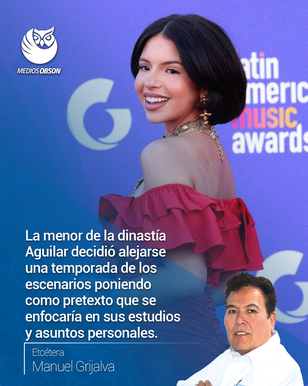 Valora a las personas cuando las tengas, no cuando las pierdas… Lenta, muy lenta se vio Ángela Aguilar y es que desde que decidió dejar sin papá a una recién nacida debió de haber puesto tierra de por medio, cuidarse de sus declaraciones y disfrutar de su noviazgo alejada de los reflectores, pero decidió gritarle a todo mundo que ella había ganado, en referencia a que logró matrimoniarse con Christian Nodal… al parecer quien gana y se lo queda pierde, pues desde que la cantante le quitó su pareja sentimental a Cazzu, la menor de la dinastía Aguilar ha recibido el repudio de gran parte de mexicanos y también, de otros países, pues gracias a su comportamiento no es bien vista… quizá sea por eso y al fracaso de la gira que sostendría por Estados Unidos que la hija de Pepeyoncé decidió alejarse una temporada de los escenarios poniendo como pretexto que se enfocaría en sus estudios y asuntos personales… pero las redes sociales no perdonan, ya que miles de usuarios de internet comentan que en realidad no soportó el ‘hate’, mismo que según muchos, ella misma provocó con varias de sus actitudes y declaraciones, ¿se va para crecer o para escapar de la tormenta que ella misma encendió?… aquí lo cierto es que cada vez que ella y su famoso esposo abren la boca lo hacen solo para ponerse ellos solitos la soga al cuello, no salen de una y ya están metidos en otra, como que no tienen bien conectado el cerebro con su lengua… El secreto de la existencia humana no solo está en vivir, sino también en saber para qué se vive… Al parecer Pablo Lyle está por salir de prisión, es por eso que el actor ha estado pidiendo a sus fans que se unan en oración para que las autoridades estadounidenses lo dejen en libertad condicional por la buena conducta que ha mostrado durante su encierro… la fiscalía había solicitado 15 años de cárcel para el actor pero teniendo en cuenta los atenuantes del caso, la jueza lo sentenció a 5 años de cárcel, 8 años de libertad condicional y 100 horas de servicio comunitario… se dice que es posible que en unas semanas más podrá salir de la cárcel y regresar a las novelas ya que su conducta ha sido impecable, también porque no hay queja alguna de él durante todos estos años, por lo que falta poco para que pueda terminar todo esto y darle vuelta a la hoja, pero, ¿podrá salir de Estados Unidos?, esa es la pregunta que día y noche me hago… Nunca sabes lo fuerte que eres, hasta que ser fuerte es la única opción que te queda… Al parecer a la que le gustó estar metida en el escándalo es a Alicia Villarreal, la cantante acaba de salir de una polémica y ahora ya está metida en otra, todo porque el compositor Javier Rodríguez Elizondo ha declarado que la letra de la canción ‘Te quedó grande la yegua’ es de él y no de la ‘güerita consentida’ como tanto ella misma ha dicho, eso después de 24 años de guardar silencio… el supuesto autor de ‘Te quedó grande la yegua’ revela que se mantuvo en silencio por más de 2 décadas por temor a las represalias, pero asegura que la letra y la idea es suya, ¡pero que nunca la registró!… por un tiempo se dijo que la ex vocalista del grupo ‘Limite’ dedicaba esta canción a Arturo Carmona, – padre de su primogénita Melenie Carmona, – de quien se divorció en 2001, mismo año en que salió a la mencionada canción… Quien obra con maldad, no es feliz ni aunque le vaya bien… Etcétera…