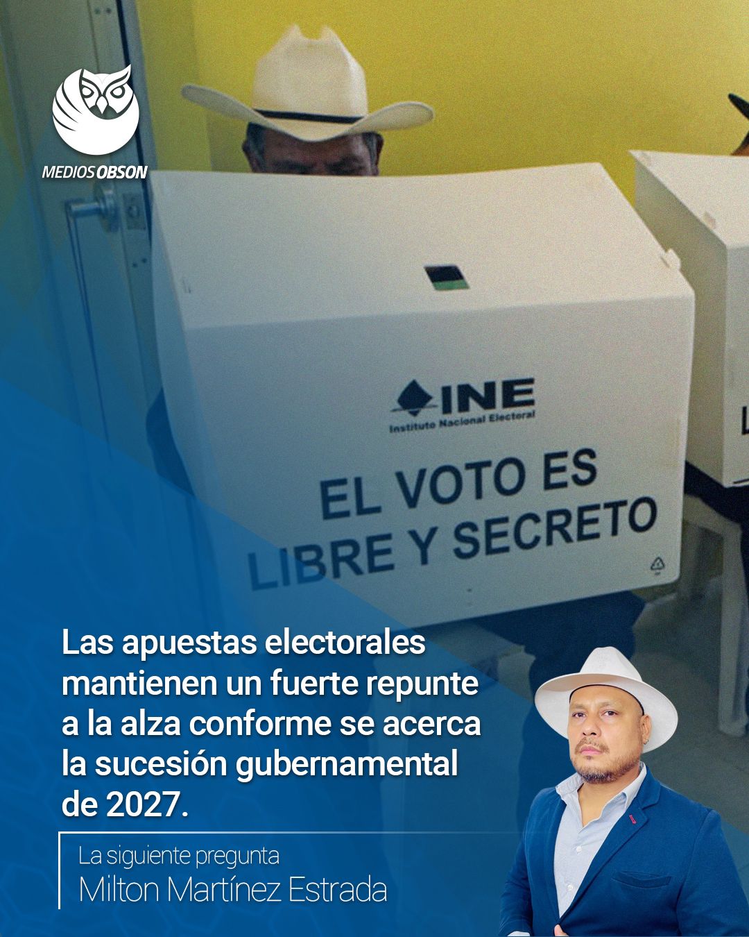 Las apuestas electorales mantienen un fuerte repunte a la alza conforme se acerca la sucesión gubernamental de 2027.