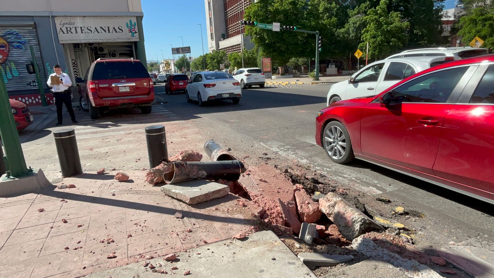 Luego de que el conductor de una camioneta perdiera el control, terminó por impactarse contra una estructura de contención en el sector centro de Hermosillo.