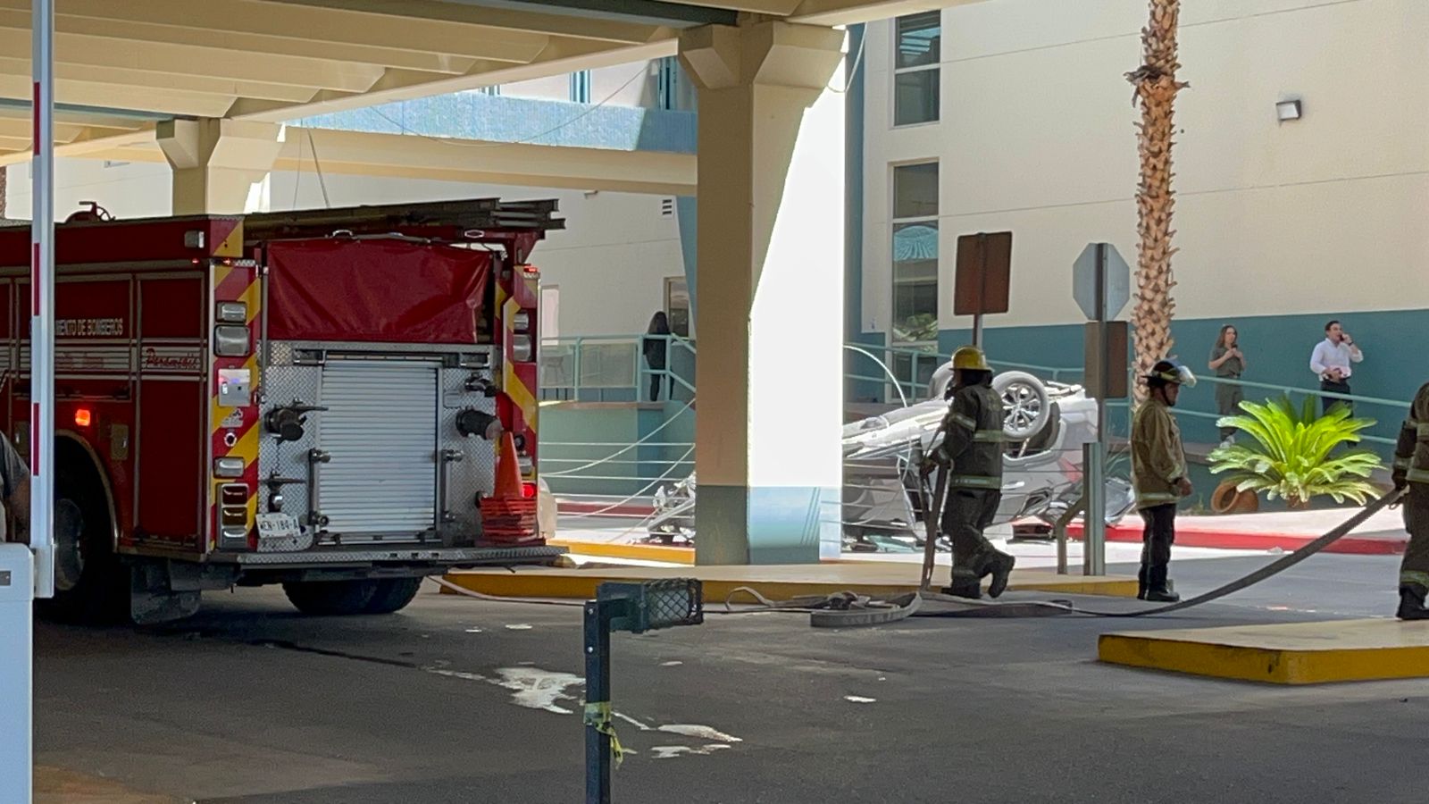 “Nos reportaron un vehículo que había caído del segundo piso del estacionamiento del Hospital San José con una persona adentro al llegar la unidad ya la persona había sido liberada por el personal del hospital a lo que nos comentan y así mismo la atendieron aquí mismo nosotros lo que nos abocamos fue a ver lo de los puntos de seguridad del vehículo a ver si había derramado combustible o algo con resultados negativos nada más que es un vehículo híbrido y pues vamos a esperar las maniobras de la grúa para poder retirarnos del lugar”, señaló.