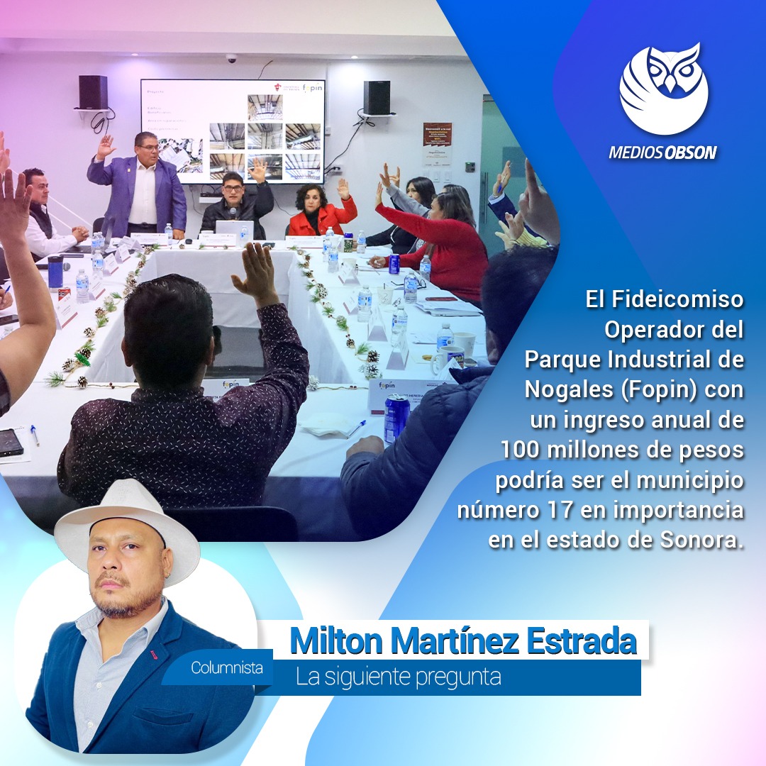Este es el primer escrito del Fideicomiso Operador del Parque Industrial de Nogales (Fopin), porque actualmente se encuentra al 30% de su remodelación un edificio que han llamado la Joya de la Corona, por su magnitud y también está en ejecución un Business Center para la frontera más importante de Sonora. Estén pendientes.