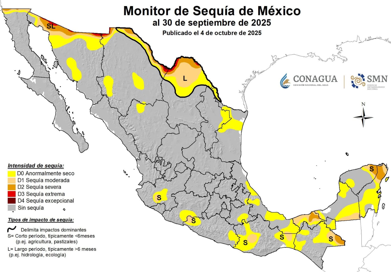 De acuerdo con el Monitor de Sequía de la Comisión Nacional del Agua (Conagua), al corte más reciente, el 61.5% del territorio sonorense ya no presenta condiciones de sequía. No obstante, el 21.8% permanece en condiciones anormalmente secas, el 7.6% sufre sequía moderada, el 7.4% enfrenta sequía severa, el 1.5% atraviesa por sequía extrema y un 0.2% se encuentra bajo sequía excepcional, la categoría más crítica.