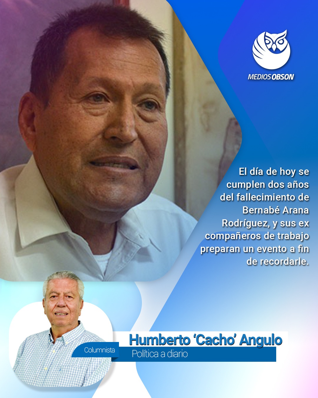 El día de hoy cumple dos años de fallecido uno de los compañeros de mi mesa de café BERNABÉ ARANA RODRÍGUEZ, y sus ex compañeros de trabajo preparan un evento a fin de recordarle, esto es los servidores de la nación, de Cajeme, Bacúm y San Ignacio Río Muerto, me imagino que ahí estará presente toda su familia, esto será en el panteón de la Misión a las cuatro de la tarde…