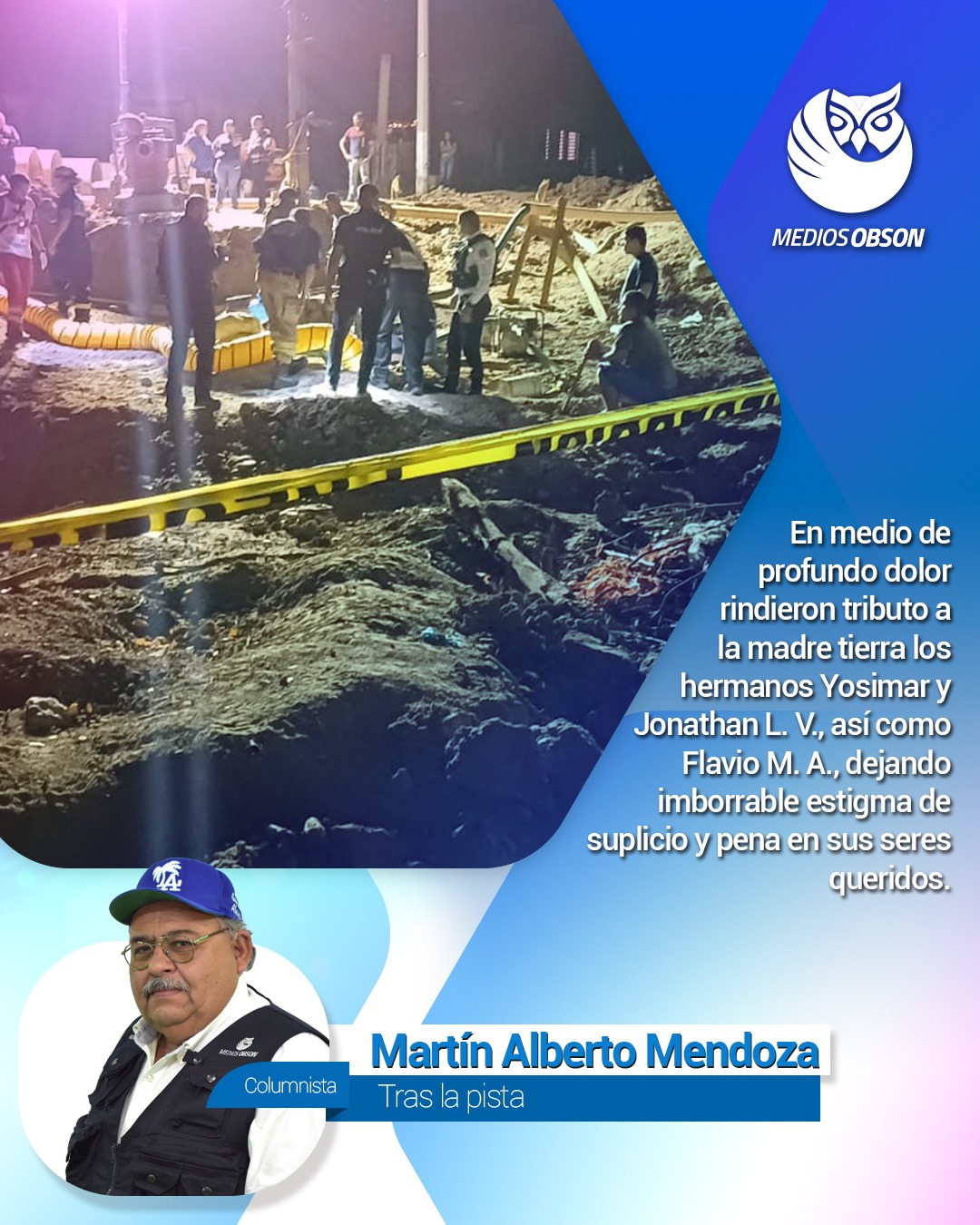 EN MEDIO de profundo dolor ayer por la tarde rindieron tributo a la madre tierra los hermanos Yosimar y Jonathan L. V., dejando imborrable estigma de suplicio y pena en sus seres queridos. Mientras que el domingo, Flavio M. A., fue llevado a su última morada, en una tragedia que se alojará en las páginas de la historia de Cajeme y, la obra del Órgano Operador Municipal de Agua Potable, Alcantarillado y Saneamiento (Oomapas) quedará marcada con esa desgracia. Las plegarias no deben silenciarse, en virtud de que hay que seguir implorando por la salud y restablecimiento de Luis Carlos R. L., quien se arrojó al pozo para salvar la vida de sus amigos y, resultó gravemente intoxicado. Continúa luchando por su vida en una unidad hospitalaria desde la misma noche del trágico viernes. En tanto, este lunes, muchos regresaron a sus rutinas y la ciudad retomó su ritmo habitual, parece que el eco de esa tragedia se va desvaneciendo entre la costumbre y la indiferencia. Pero hay quienes no podrán olvidar jamás, sus familias, sus hijos y las personas que los aman, porque para ellos el tiempo se detuvo en ese momento en que la vida se les fue cumpliendo con su deber. Ellos eran trabajadores que salieron de casa un día más, convencidos de que regresarían quizás al amanecer. Gente sencilla, comprometida, que hacía su parte para que la ciudad funcionara mejor. No estaban buscando reconocimiento ni aplausos, solo querían cumplir, ganarse el pan y volver con los suyos. Y, sin embargo, no volvieron. Lo que debía ser una jornada de trabajo se convirtió en infortunio, porque alguien falló, porque hubo una omisión, un descuido o una falta de responsabilidad que terminó costando vidas. Sus hogares hoy guardan silencio donde antes había risas. Sin afán de culpar a nadie, pero en aras de comprender con objetividad lo ocurrido, surge una pregunta inevitable: ¿Por qué, después de que se ordenó paralizar la obra no se dispuso del resguardo inmediato del área, considerando que existía un antecedente de suspensión por parte de Protección Civil y un riesgo evidente para quienes se encontraban ahí? No se trata de señalar personas, sino de identificar si hubo omisión operativa que pudo haber evitado consecuencias mayores, porque en estos casos la prevención y la prudencia son parte esencial del deber institucional. Era fundamental que se solicitara el apoyo a la Policía Municipal, debido a que resultaba apremiante la preservación del sitio y la seguridad de las personas. Quizás por ello, ayer se rumoró que le dieron un jalón de orejas a Francisco Mendoza Calderón. ¿Realmente sería cierto? …LO MÁS TRISTE de este episodio es que sucedió justo cuando nos acercamos a una de las épocas más esperadas del año, la Navidad, serán ellos los grandes ausentes. Mientras las calles se llenen de luces y los hogares de abrazos, en tres casas el dolor ocupará el lugar de la alegría. Nada puede reparar eso, pero sí se puede y se debe exigir que no quede impune. Que no se repita. Las autoridades tienen en sus manos la obligación de esclarecer lo ocurrido y de asumir con seriedad las responsabilidades. No se pide venganza, sino verdad, justicia y respeto por la memoria de quienes murieron trabajando por su ciudad. La sociedad no puede permitir que el silencio ni la costumbre borren la indignación, porque cuando el deber se cumple con la vida, lo mínimo que se debe ofrecer es justicia. La comunidad habrá de mantenerse muy atenta de lo que el Fiscal del Estado, Gustavo Rómulo salas Chávez con su sapiencia jurídica y voz dura vuelva a repetir lo que tantas ocasiones ha dicho…en Sonora nadie estará por encima de la ley. Esperemos que lo ocurrido con los tres jóvenes que indirectamente trabajaban para Oomapas no termine convirtiéndose en un recuerdo fugaz, como tantas fatalidades que conmueven unos días y luego se diluyen en el olvido…NO HAY QUE omitir que en Sonora hemos visto historias desgarradoras, como la del predio “La Antena”, en el Valle del Yaqui, donde se localizaron restos de veintiséis personas asesinadas y ni qué decir del lugar conocido como Choyudo en Hermosillo, donde fueron hallados decenas de cuerpos y, a pesar del horror, poco cambió después. No podemos permitir que vuelva a suceder lo mismo: que la indignación dure menos que el duelo, que las promesas de justicia se desvanezcan con el tiempo y que la vida de quienes murieron cumpliendo con su trabajo se reduzca a una estadística más. La diferencia entre la memoria y el olvido la marcará la voluntad de las autoridades y de la sociedad para no dejar que este hecho quede impune. Porque cada tragedia que se normaliza, abre la puerta a que se repita otra. Y porque la justicia no se demuestra con palabras, sino con resultados, con verdad y con respeto a los que ya no están. Solo habría que recordar el hallazgo de decenas de cuerpos en el predio del Choyudo no puede quedar reducido a una cifra ni a una nota más en la estadística del horror. Detrás de cada uno hay una historia, una familia que espera respuesta y una deuda moral de la Fiscalía Estatal con quienes buscan a sus desaparecidos y esto lo sabe la líder de las madres buscadoras de Sonora, Ceci Flores Armenta. Las investigaciones deben mantenerse contundentes, transparentes y libres de cualquier manipulación política o mediática. No basta con informar que se hallaron restos; se requiere identificar, esclarecer y sancionar. En Sonora ya no hay margen para la indiferencia institucional: cada omisión es una ofensa a las víctimas y una herida abierta para toda la sociedad. La Fiscalía no puede limitarse a dar comunicados ni a posar para las fotografías de campo. Se necesita un trabajo real, sostenido, respaldado por peritajes serios, tecnología forense y la colaboración de las familias. Si se permite que este caso se diluya, como tantos otros, el mensaje será devastador: que la impunidad sigue siendo el lenguaje oficial. La exigencia