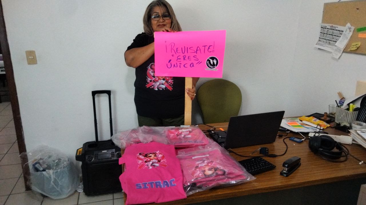 La líder sindical hizo ver que los trabajadores se congregarán este día en punto de las 5 de la tarde para iniciar el recorrido de la caravana portando camisetas rosas.