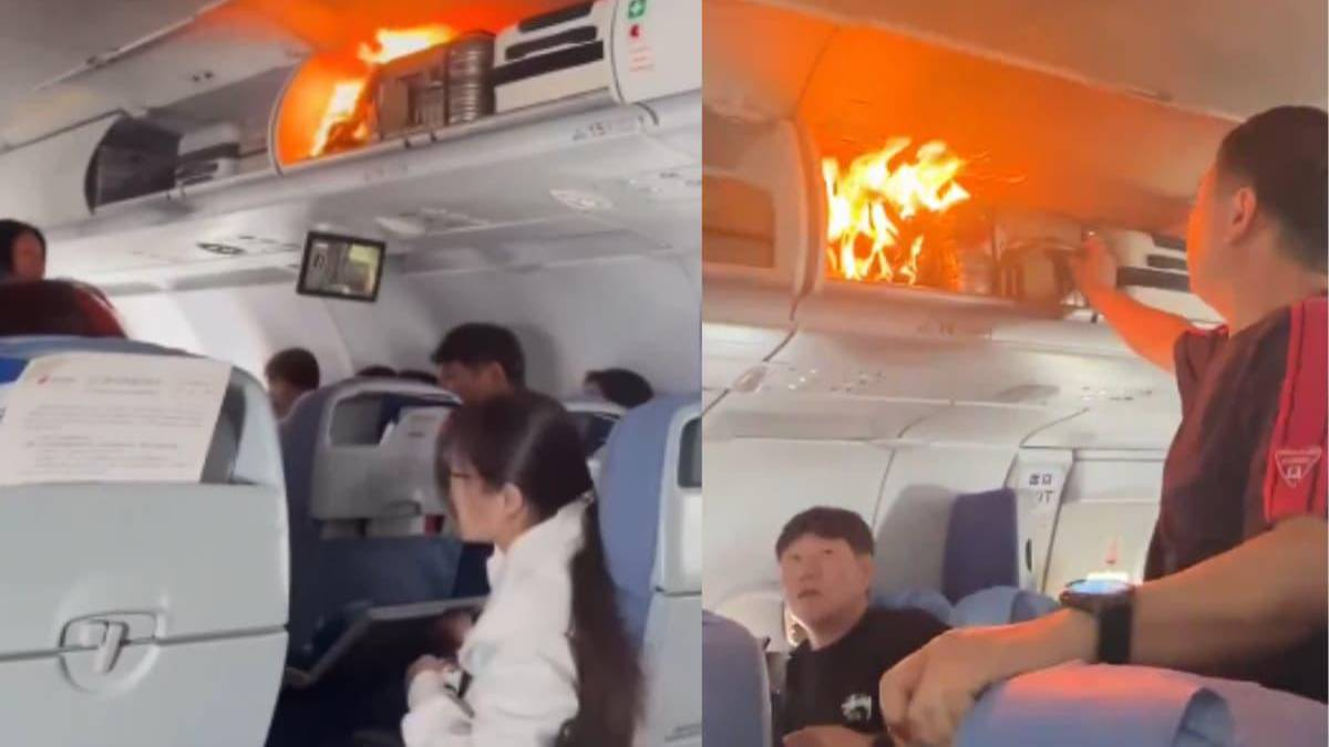 Las imágenes de los pasajeros, que grabaron los momentos de pánico que se sintieron en pleno vuelo, muestran un equipaje que se ubica en la parte superior de la cabina envuelto en llamas, mientras decenas de testigos graban con sus celulares y gritan en señal de socorro.