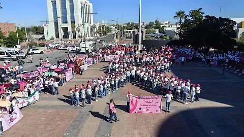 Alrededor de las 8:00 horas inició la caminata, saliendo de la plaza Emiliana de Zubeldía, y se dirigieron hacia la explanada del Centro de gobierno, en el primer cuadro de la ciudad.