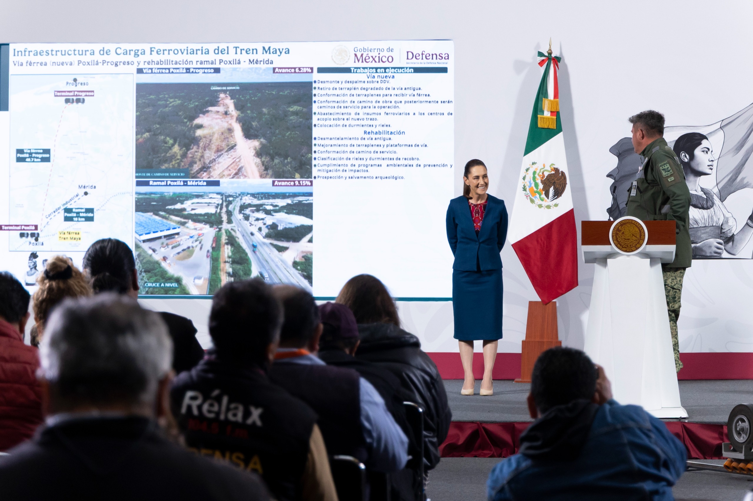 El comandante del Agrupamiento de Ingenieros Felipe Ángeles, general de División, Gustavo Ricardo Vallejo Suárez, destacó que se tiene un avance de cerca del 10 por ciento del Ciudad de México-Pachuca generando 8 mil 288 empleos y del 4.8 por ciento del Ciudad de México-Querétaro creando 8 mil 416 empleos. Además, informó que están próximos a concluir los estudios de ingeniería básica del tren Ciudad de México–Pachuca; Ciudad de México–Querétaro; Querétaro-Irapuato y del Saltillo-Nuevo Laredo. Respecto a la construcción de la infraestructura de carga del Tren Maya, agregó que se tienen 7 frentes de trabajo, cuyos trabajos para la construcción de las terminales Palenque, Poxilá, Progreso y Cancún han generado 9 mil empleos directos.